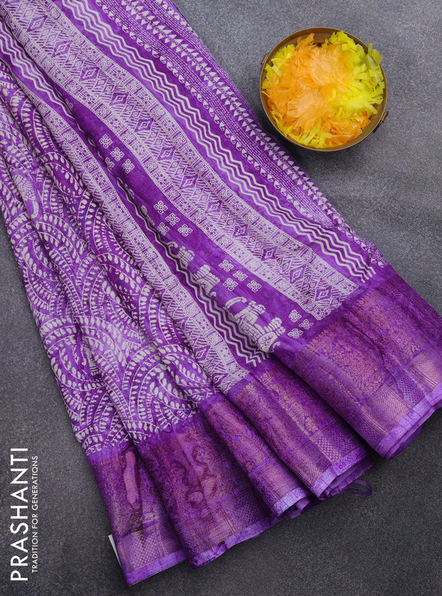 Semi dola saree purple shade with allover ikat ...