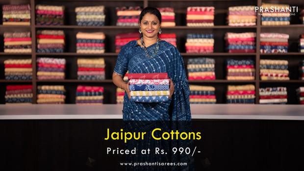 Jaipur cotton saree indigo blue and black with ...