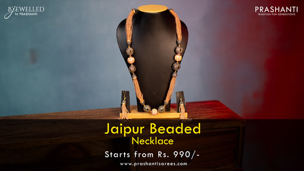 Jaipur beaded multilayer necklace cream with re...