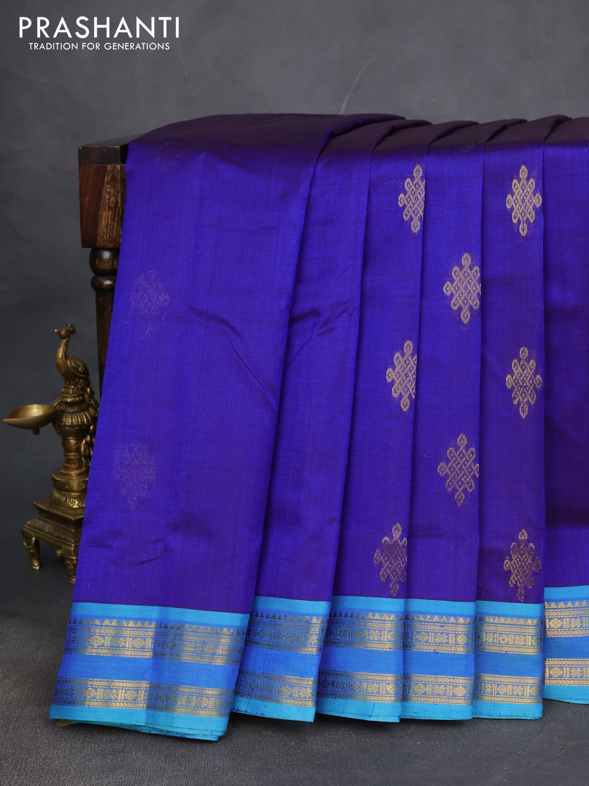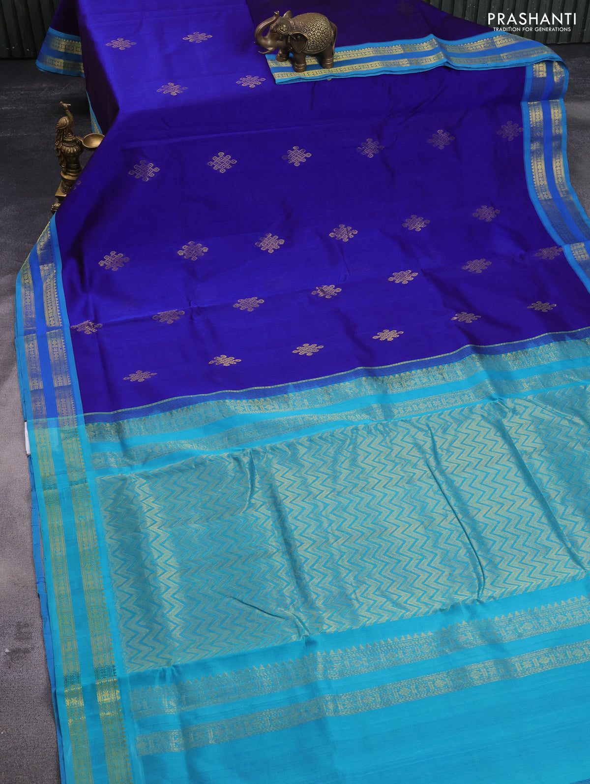 10 yards silk cotton saree blue and teal blue with zari woven buttas and rettapet zari woven border