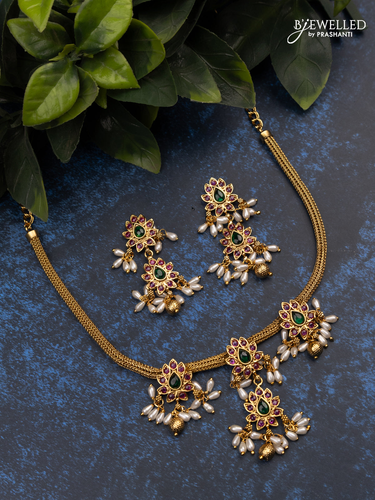 Antique attigai necklace with kemp stones and pearl & golden beads hanging