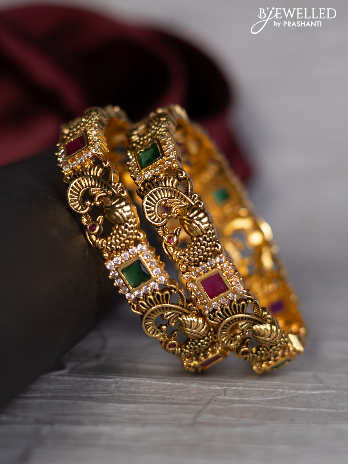 Antique bangle peacock design with kemp and cz stones