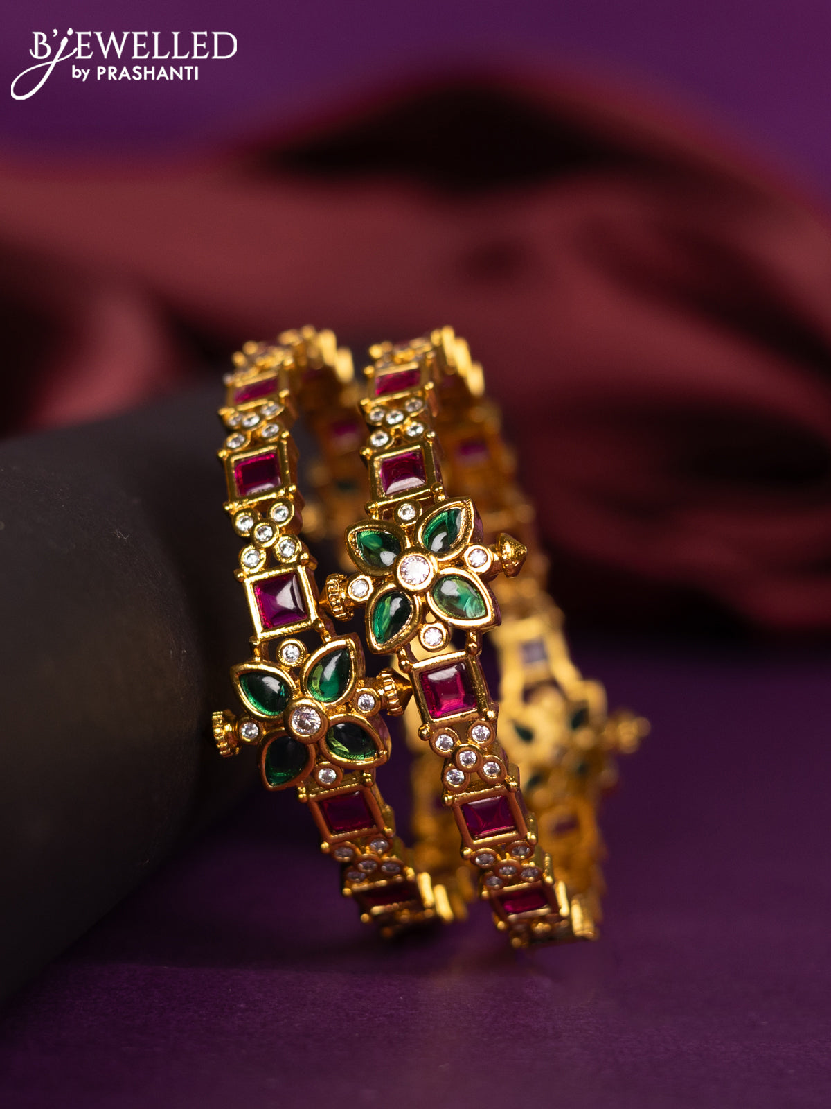 Antique bangles floral design with kemp and cz stones