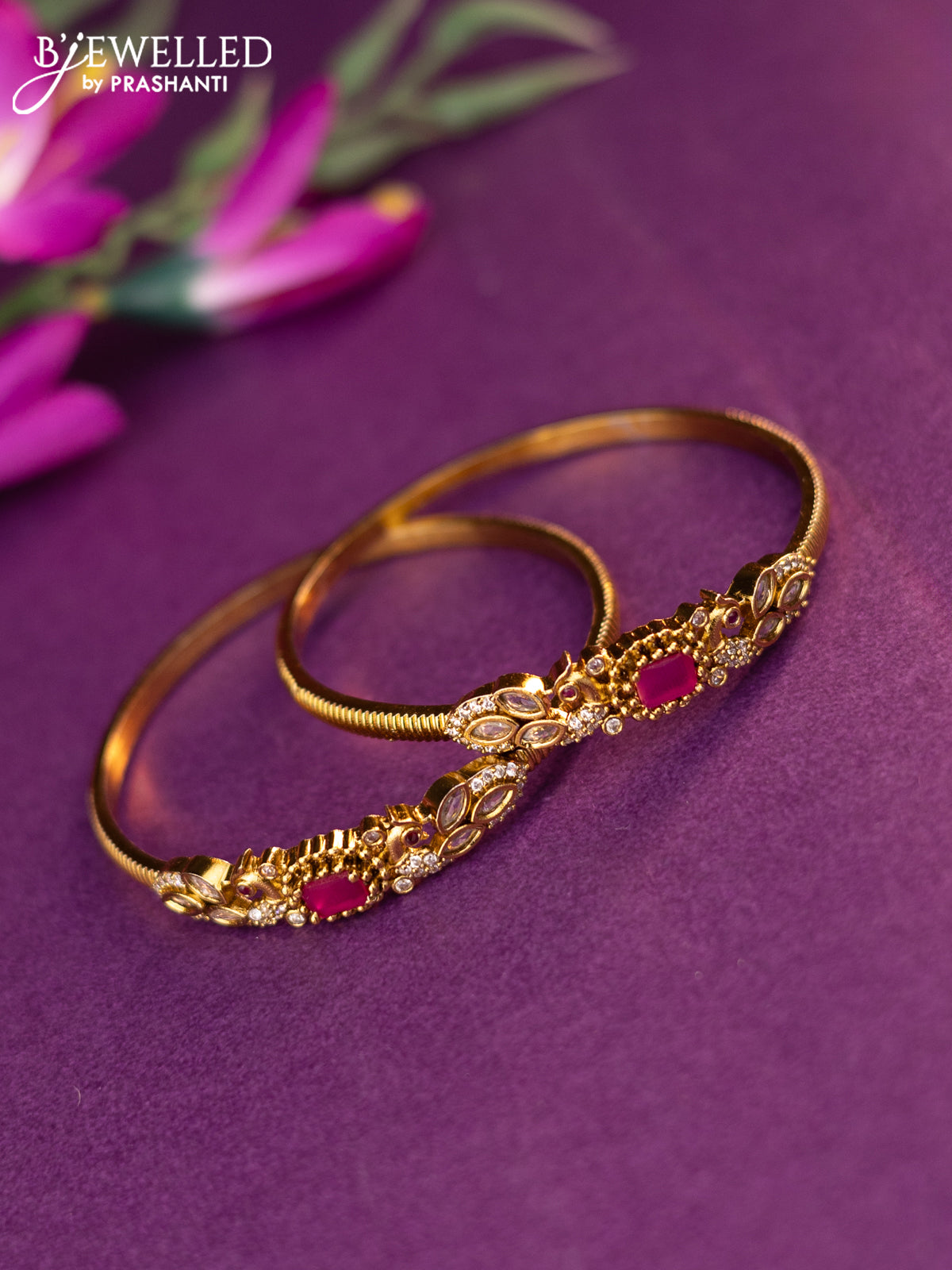 Antique bangles with ruby and cz stones