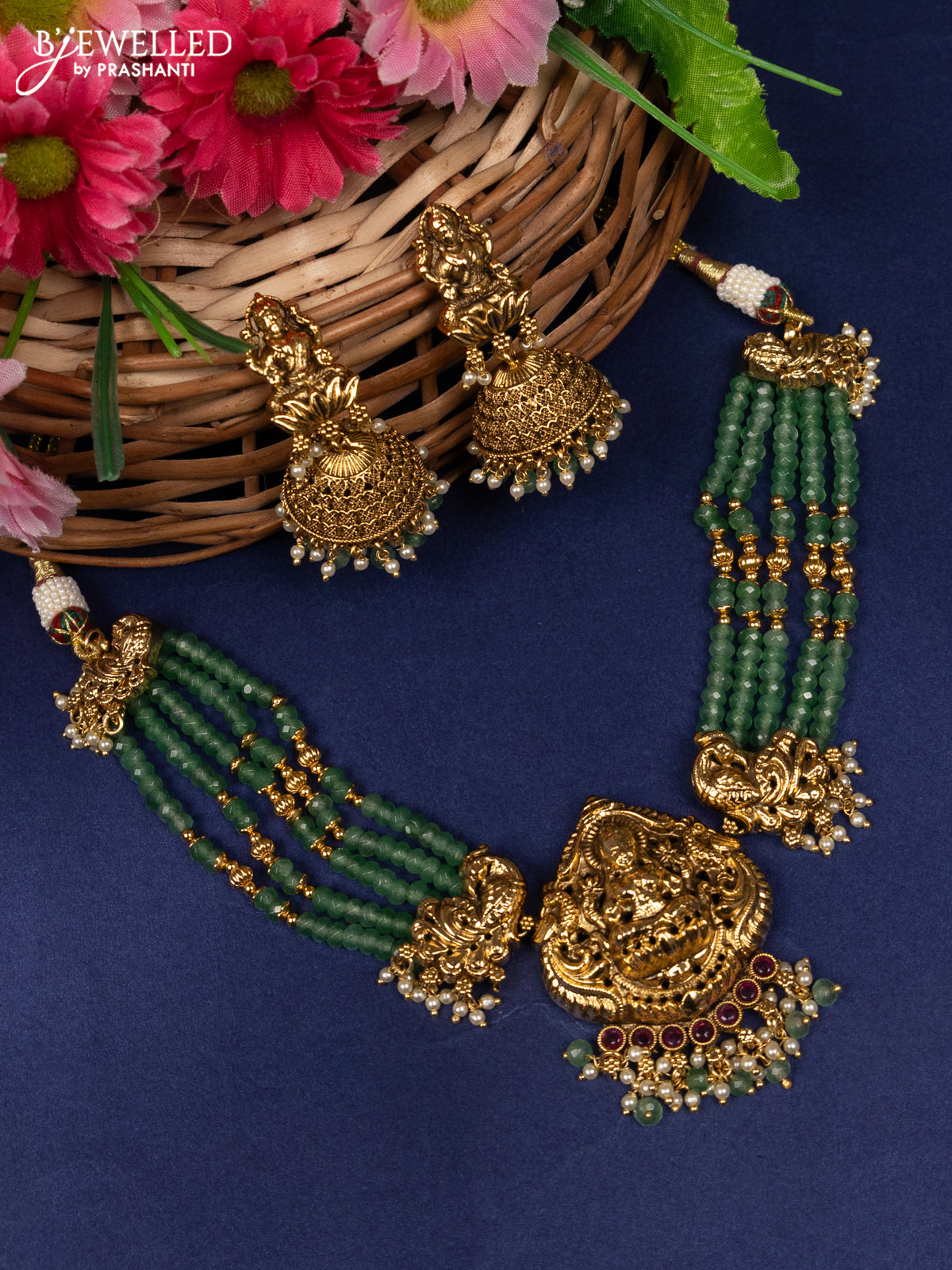 Antique beaded choker lakshmi pendant with pink kemp stones and pearl & green beads hanging