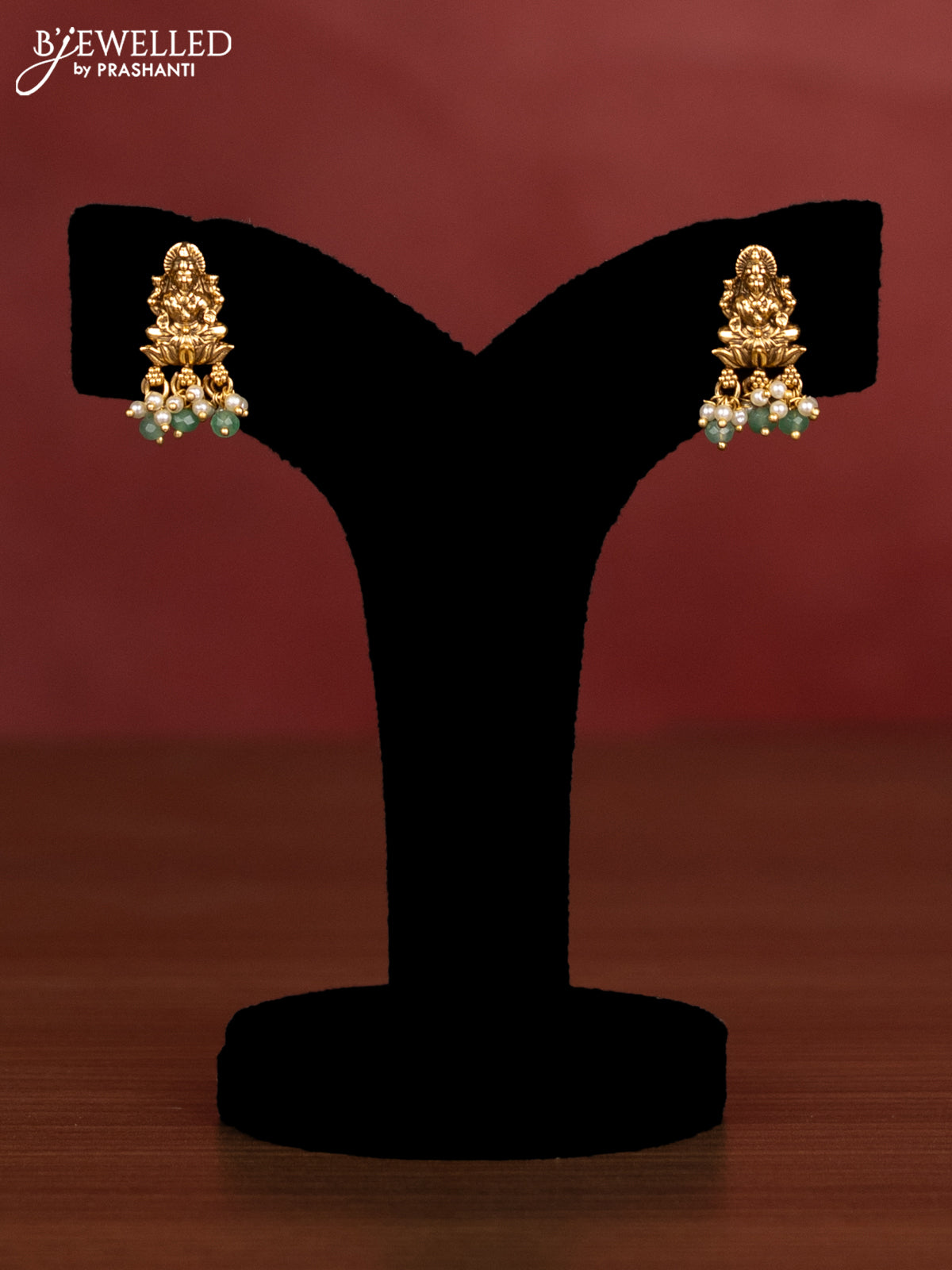 Antique beaded necklace lakshmi pendant with kundan stones and pearl & green beads hanging