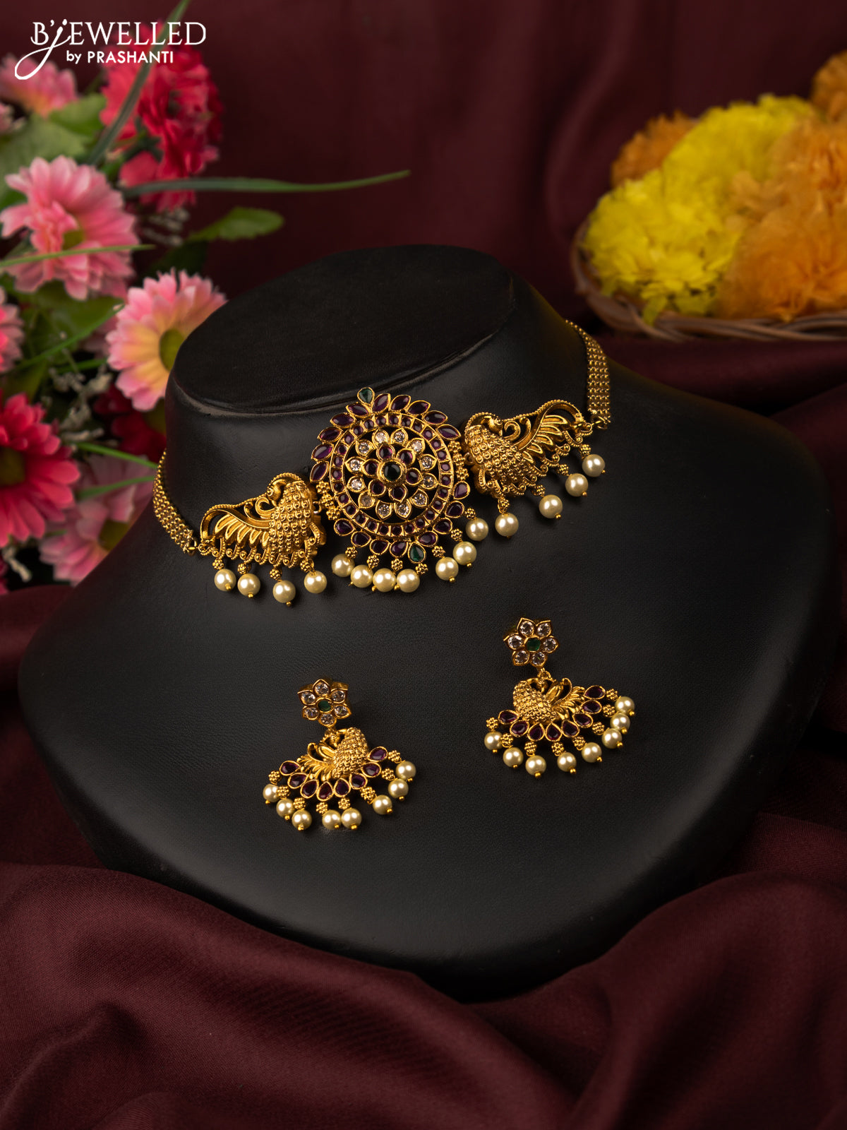 Antique choker peacock design with kemp & cz stones and pearl hangings