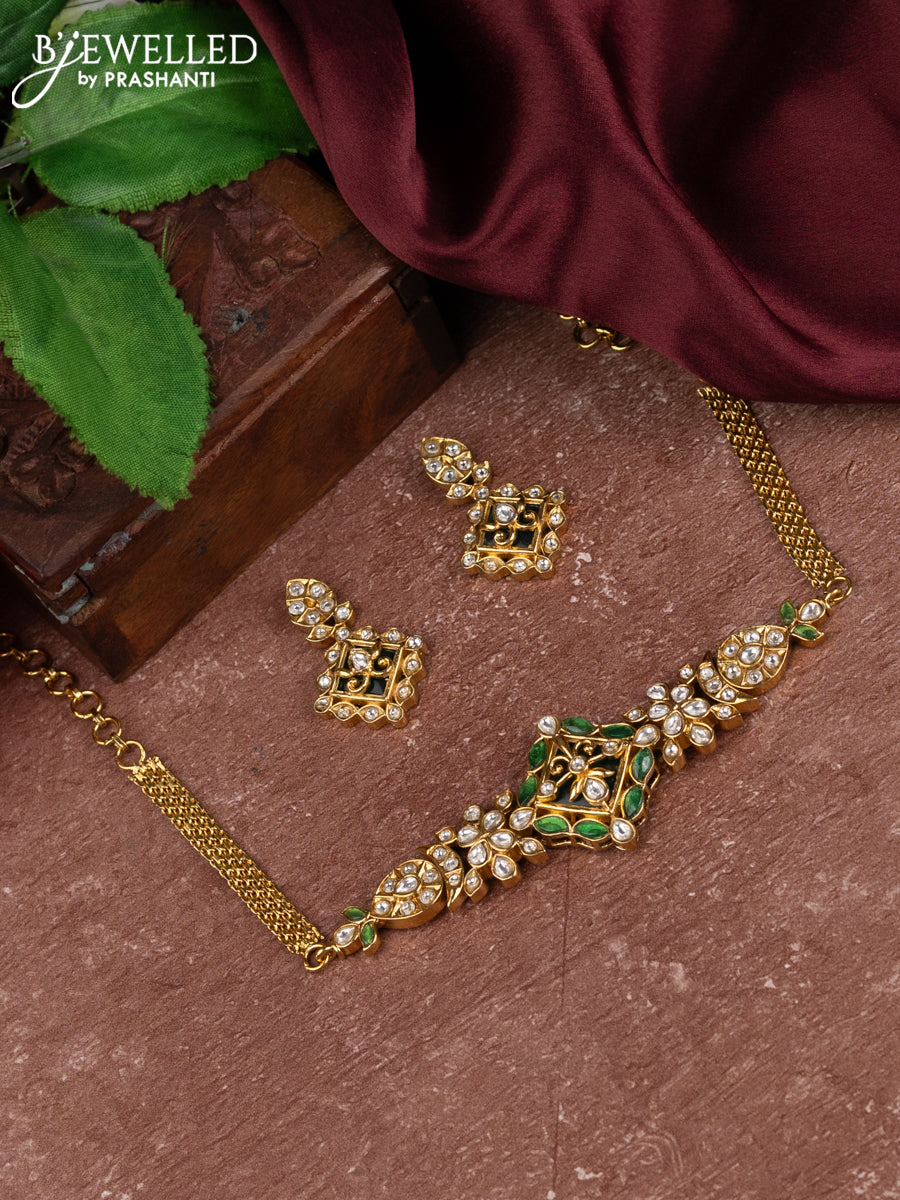 Antique choker with green kemp and kundan stones