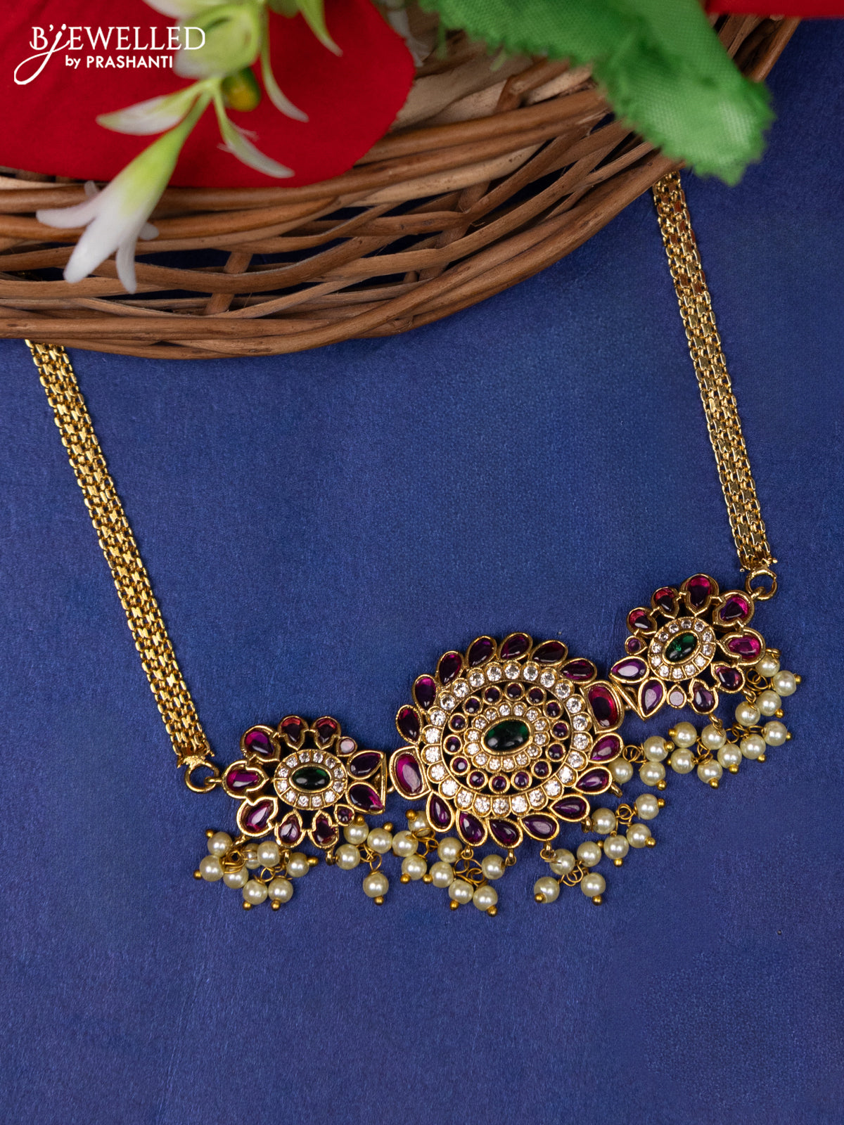 Antique choker with kemp & cz stone and pearl hanging without earring