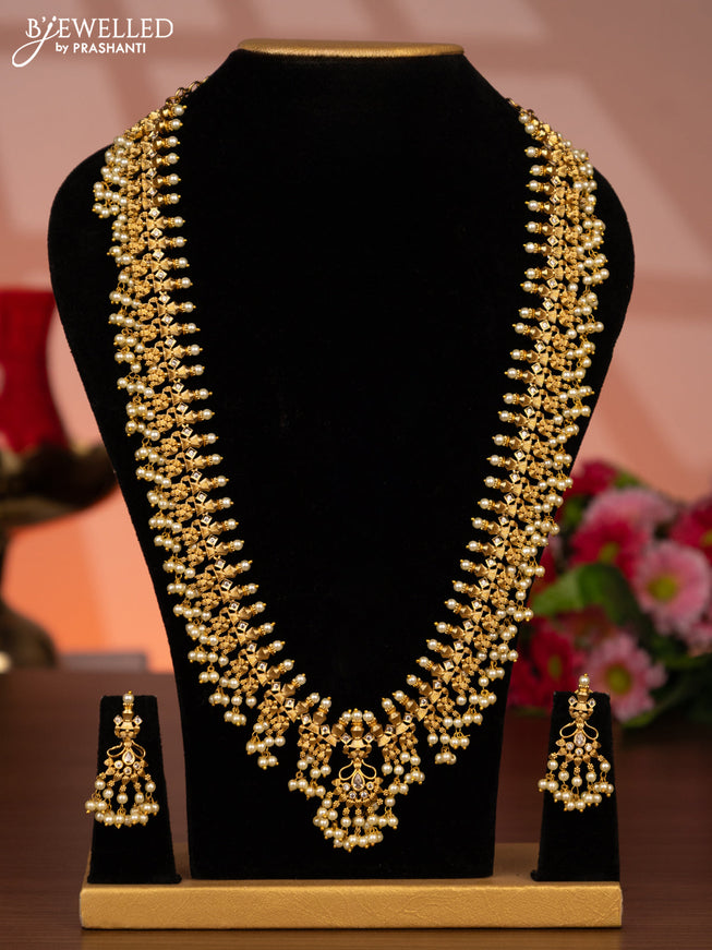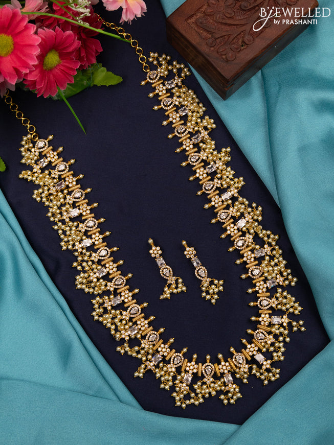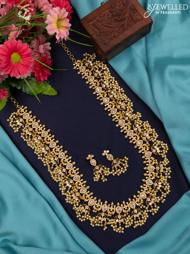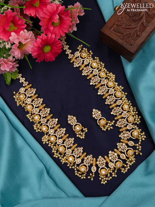 Antique guttapusalu haaram with cz stones and golden beads hanging