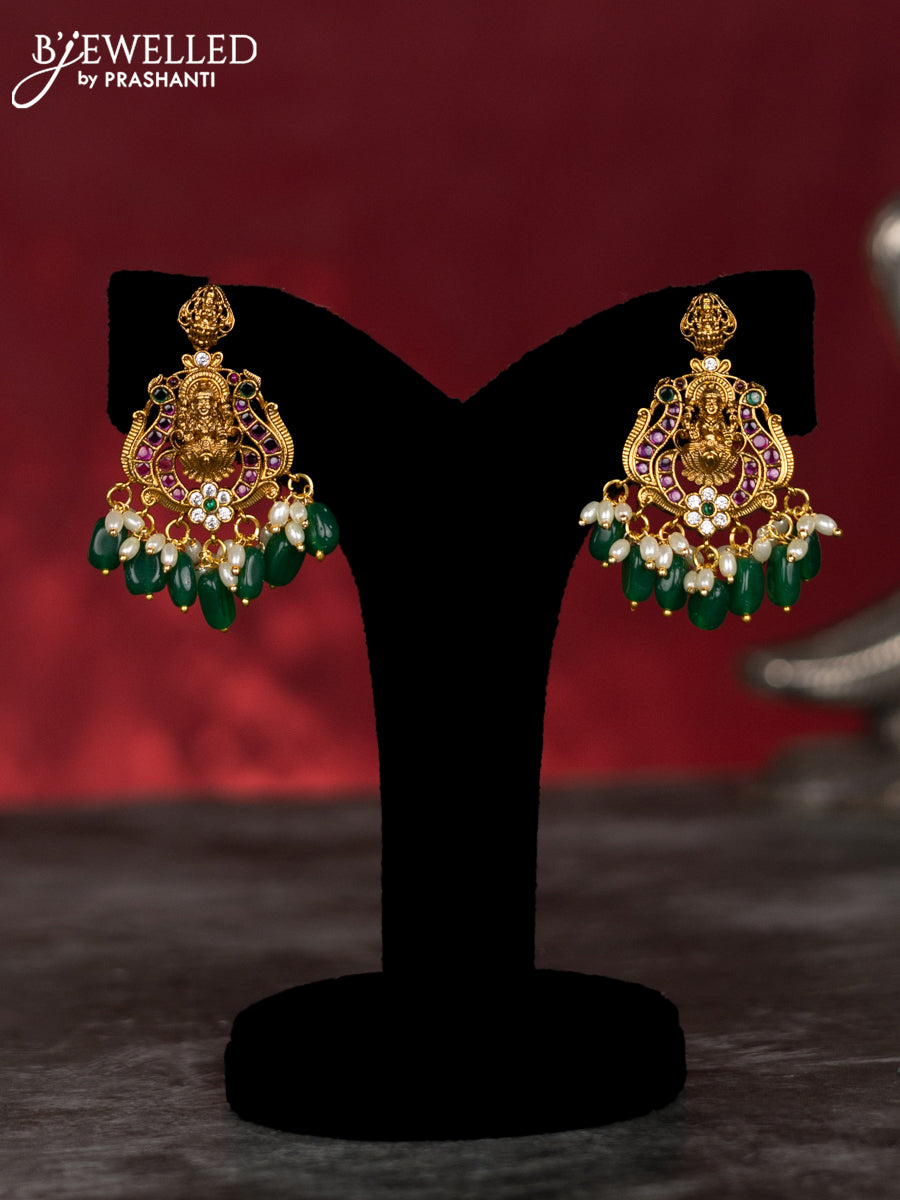 Antique guttapusalu haram lakhmi design with kemp & cz stones and pearl & green beads hangings