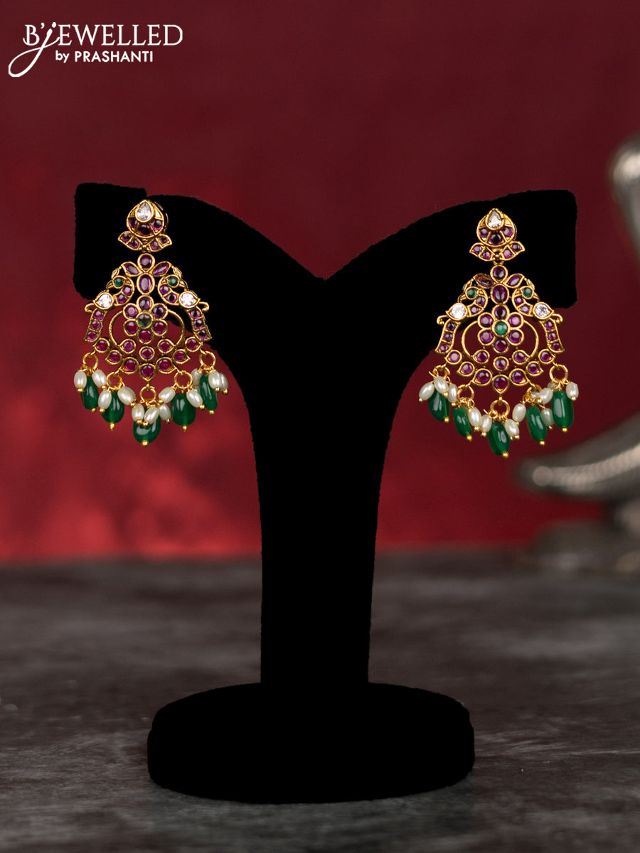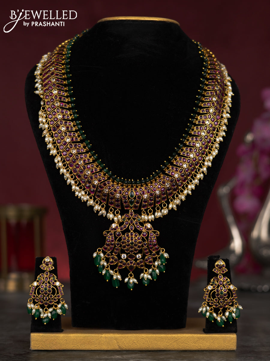 Antique guttapusalu haram with kemp & cz stones and pearl & green beads hangings