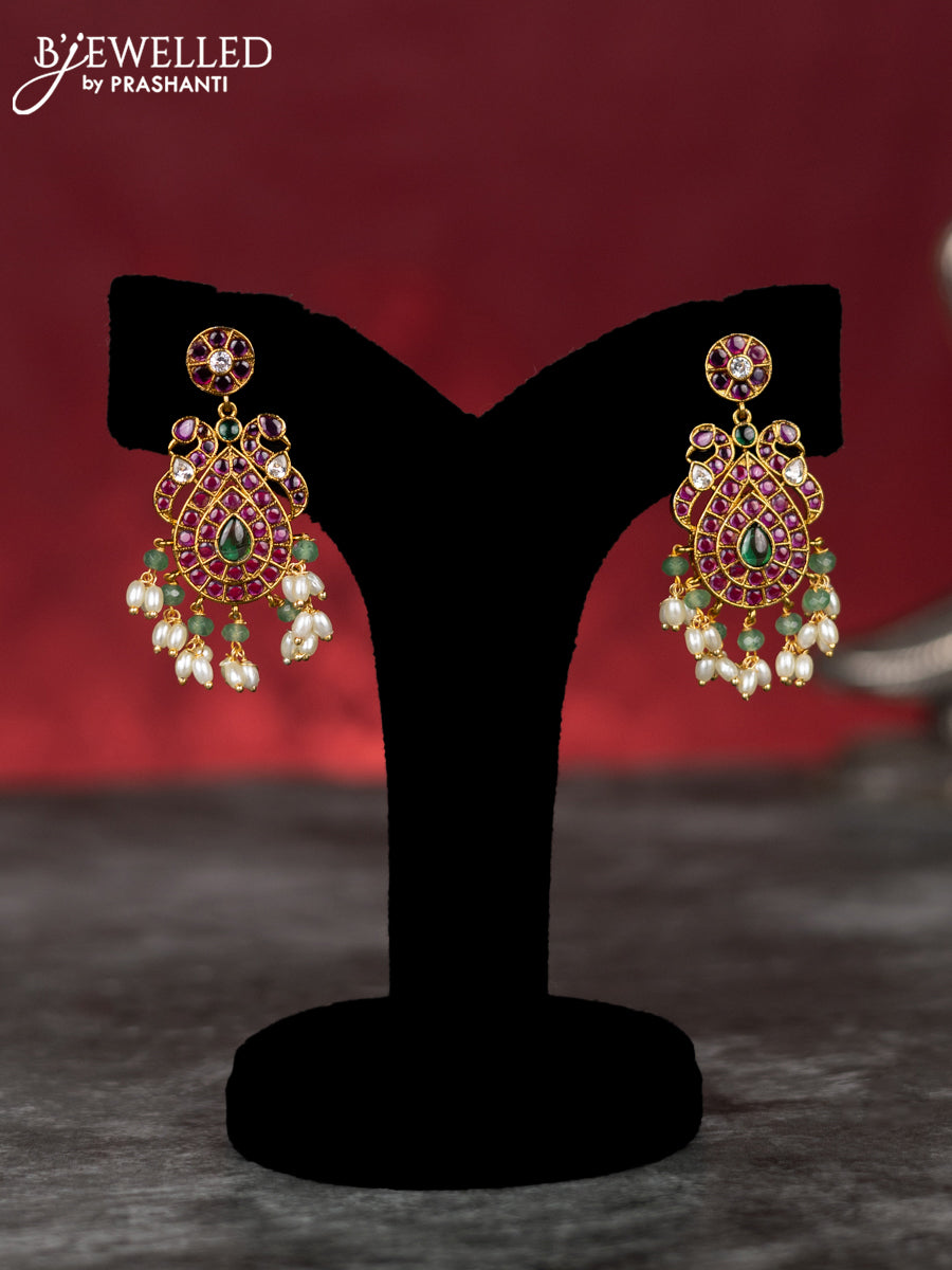 Antique guttapusalu necklace manga pattern with kemp & cz stones and pearl hangings