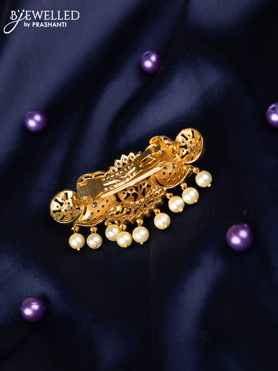Antique hair clips medium size bird design with kemp & cz stones and pearl hangings
