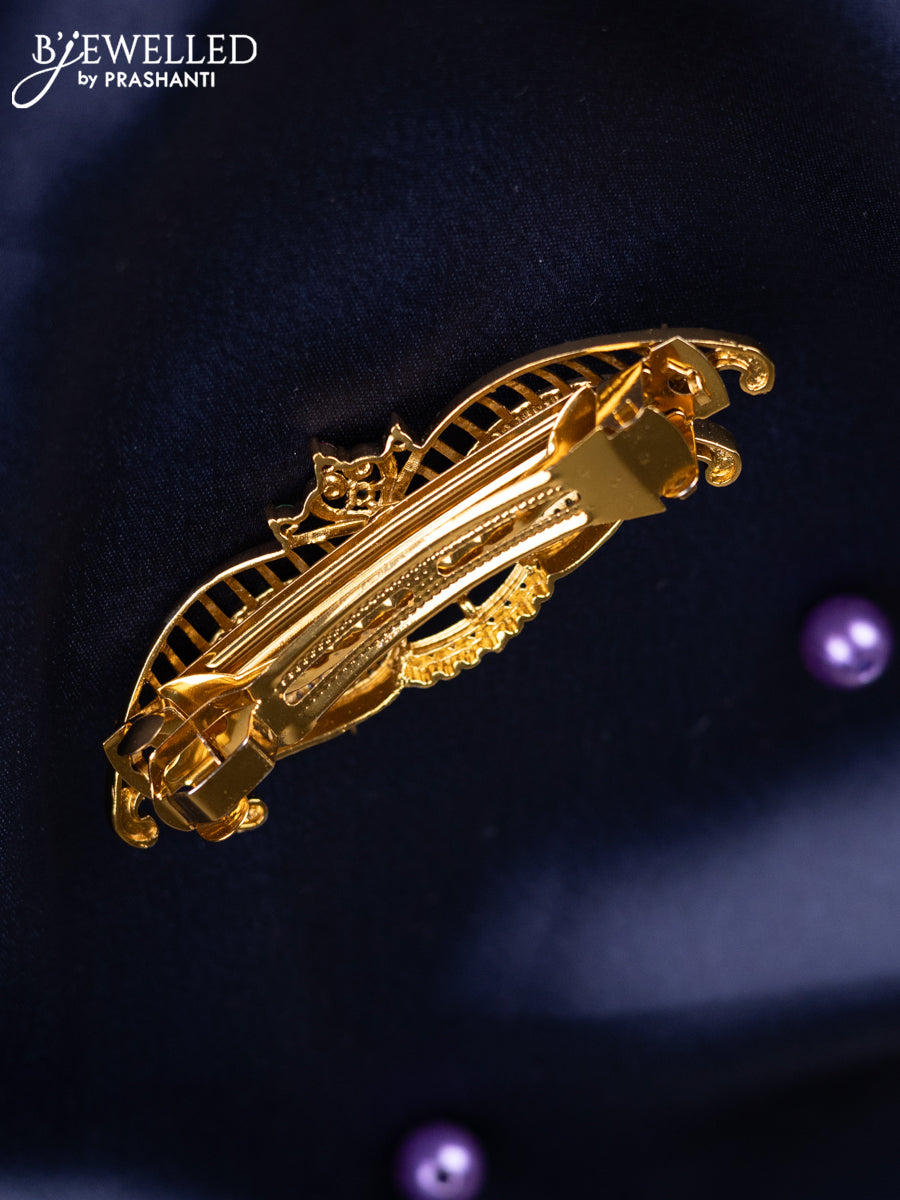 Antique hair clips medium size floral design with kemp and cz stones