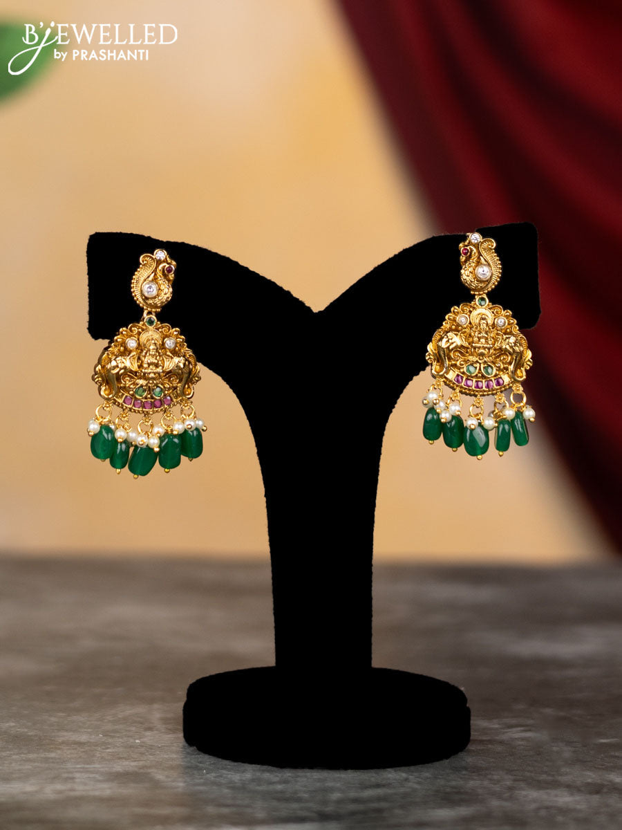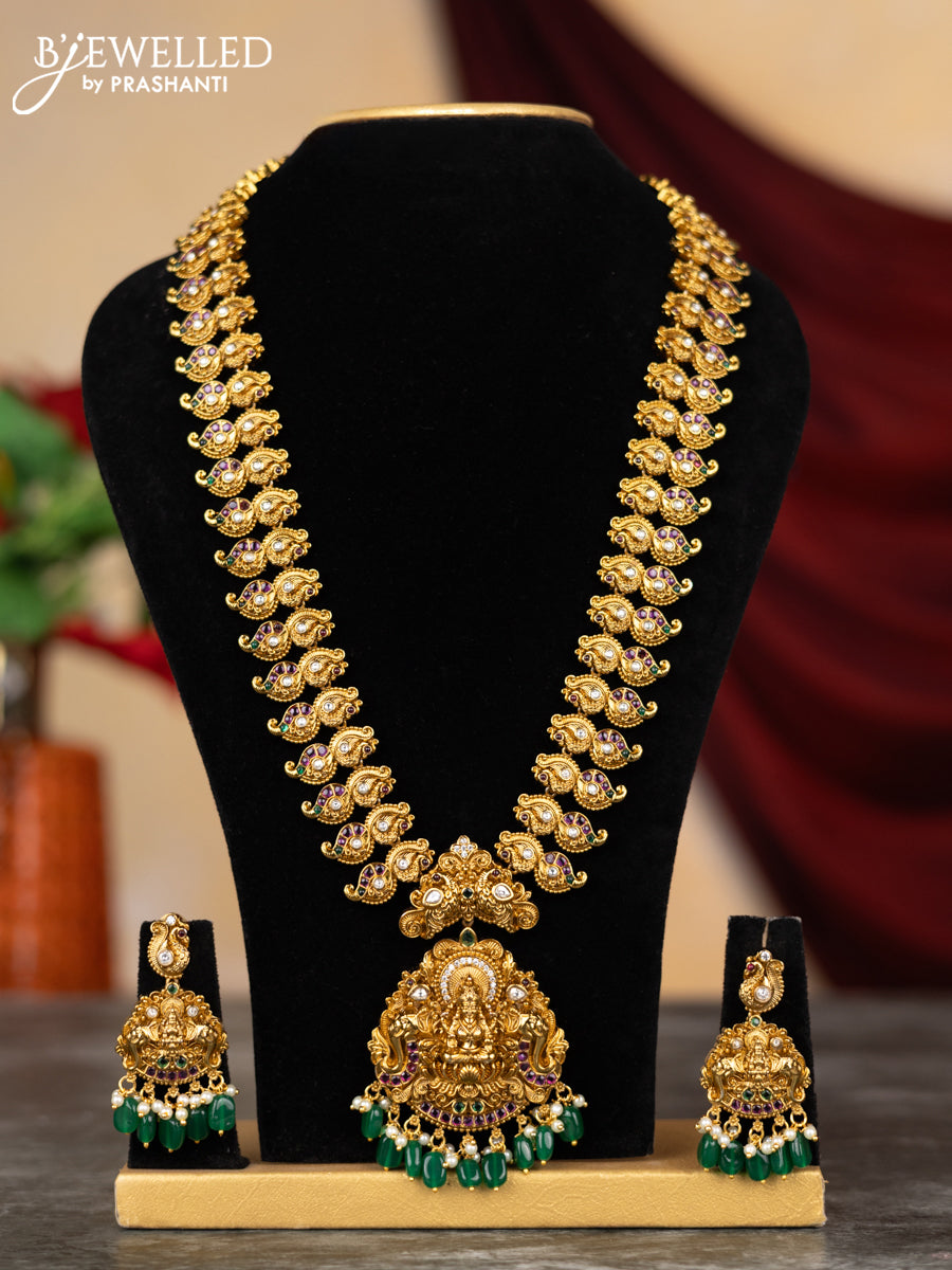 Antique haram lakshmi & manga design with kemp & cz stones and pearl & green beads hangings