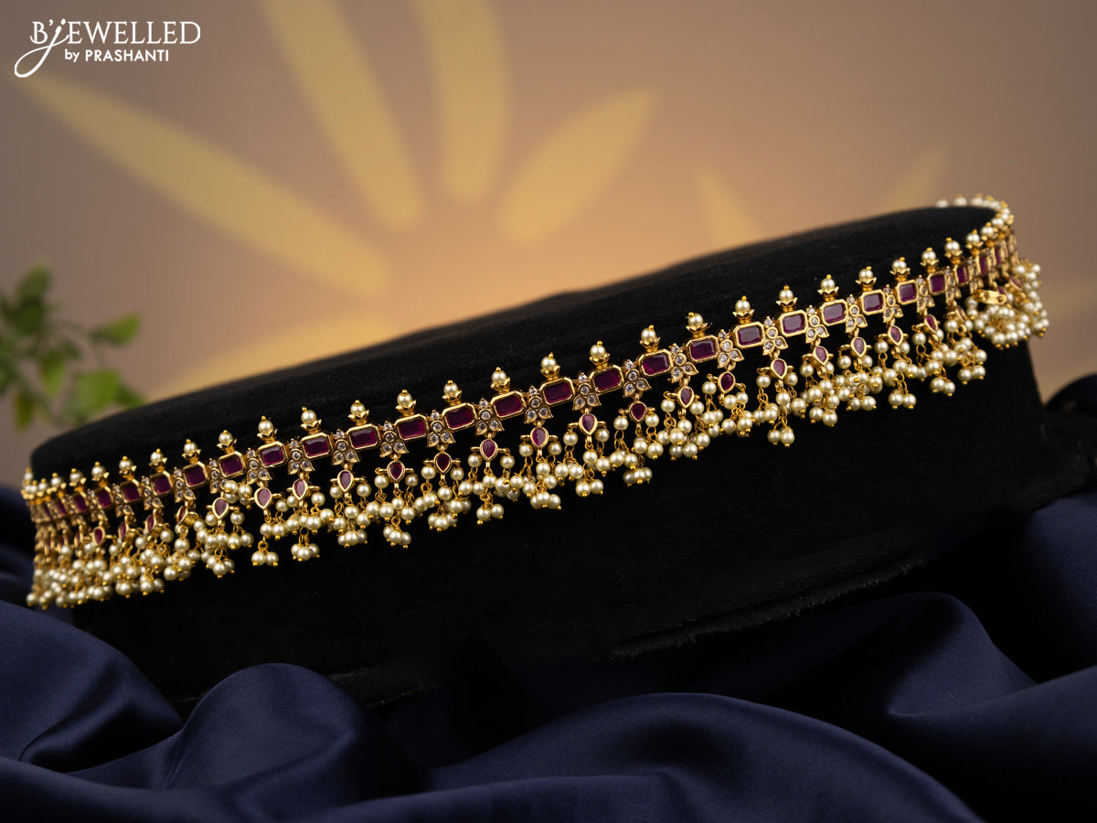 Antique hip chain with pink kemp & cz stones and pearl hangings