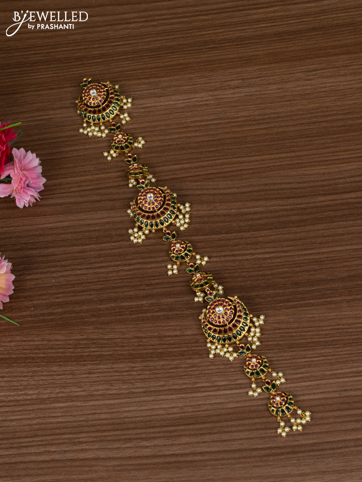 Antique jada billai chandbali style with kemp stones and pearl hangings