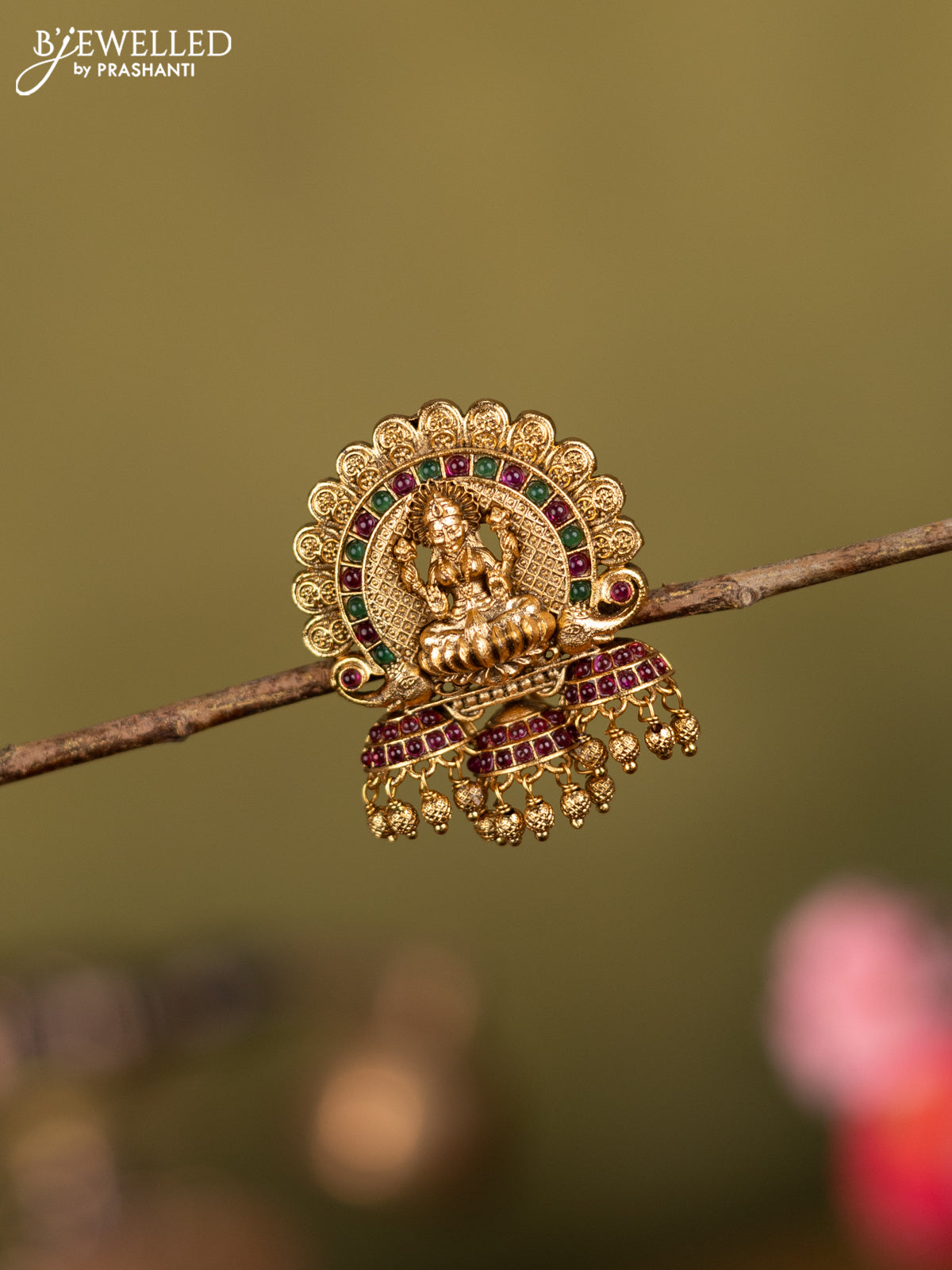 Antique jada billai lakshmi design with kemp stones and golden beads hanging