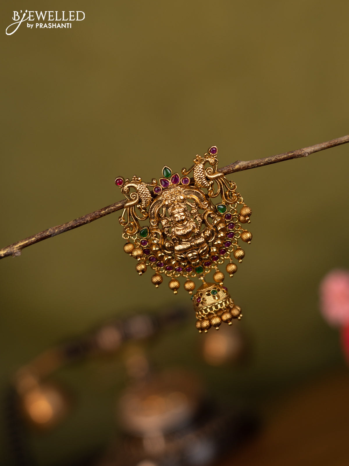 Antique jada billai lakshmi & peacock design with kemp stones and golden beads hangings