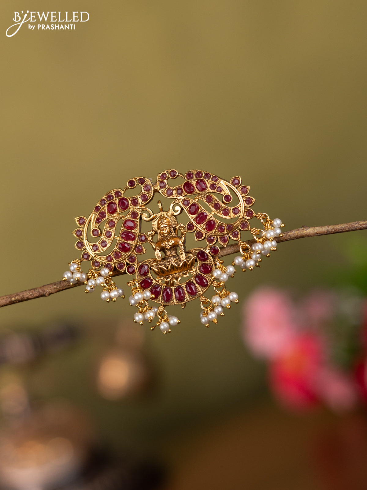 Antique jada billai lakshmi & peacock design with pink kemp stones and pearl hangings