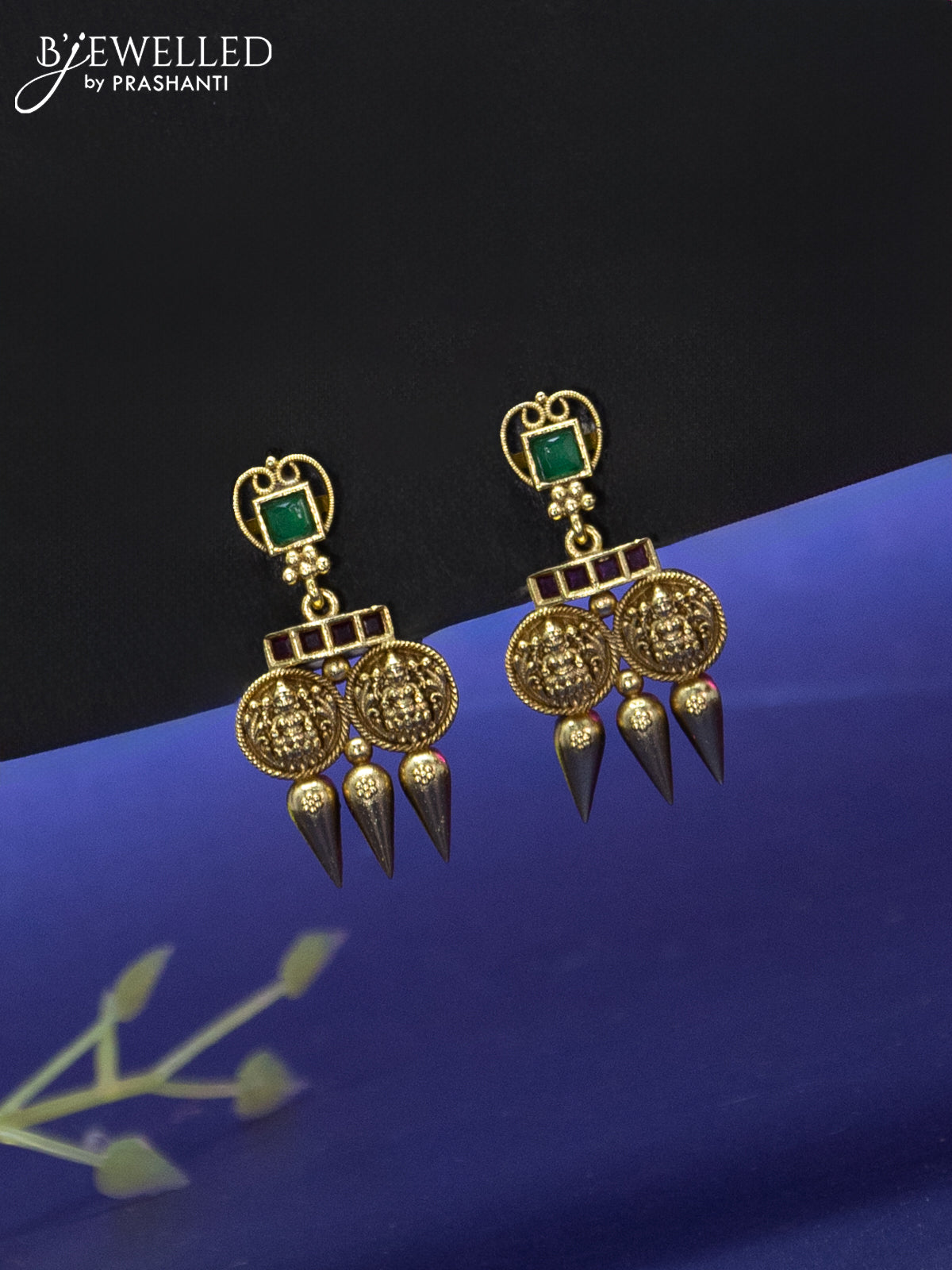 Antique Necklace lakshmi design with kemp stones