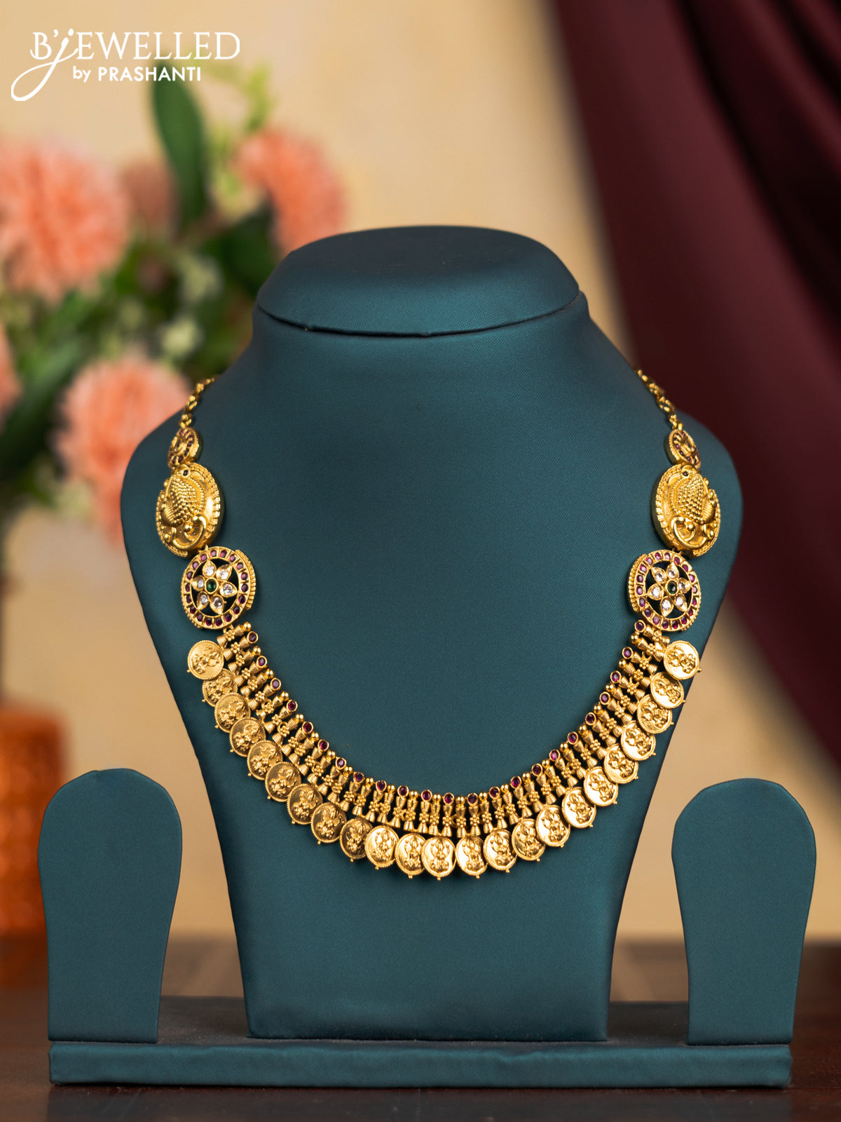 Antique necklace lakshmi kasu design with kemp and cz stones without earrings