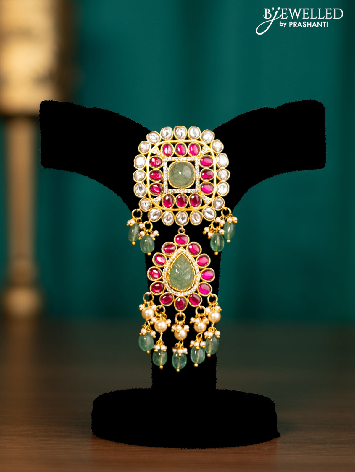Antique pendant with jadau kundan stones and natural beads & pearl hangings without earrings