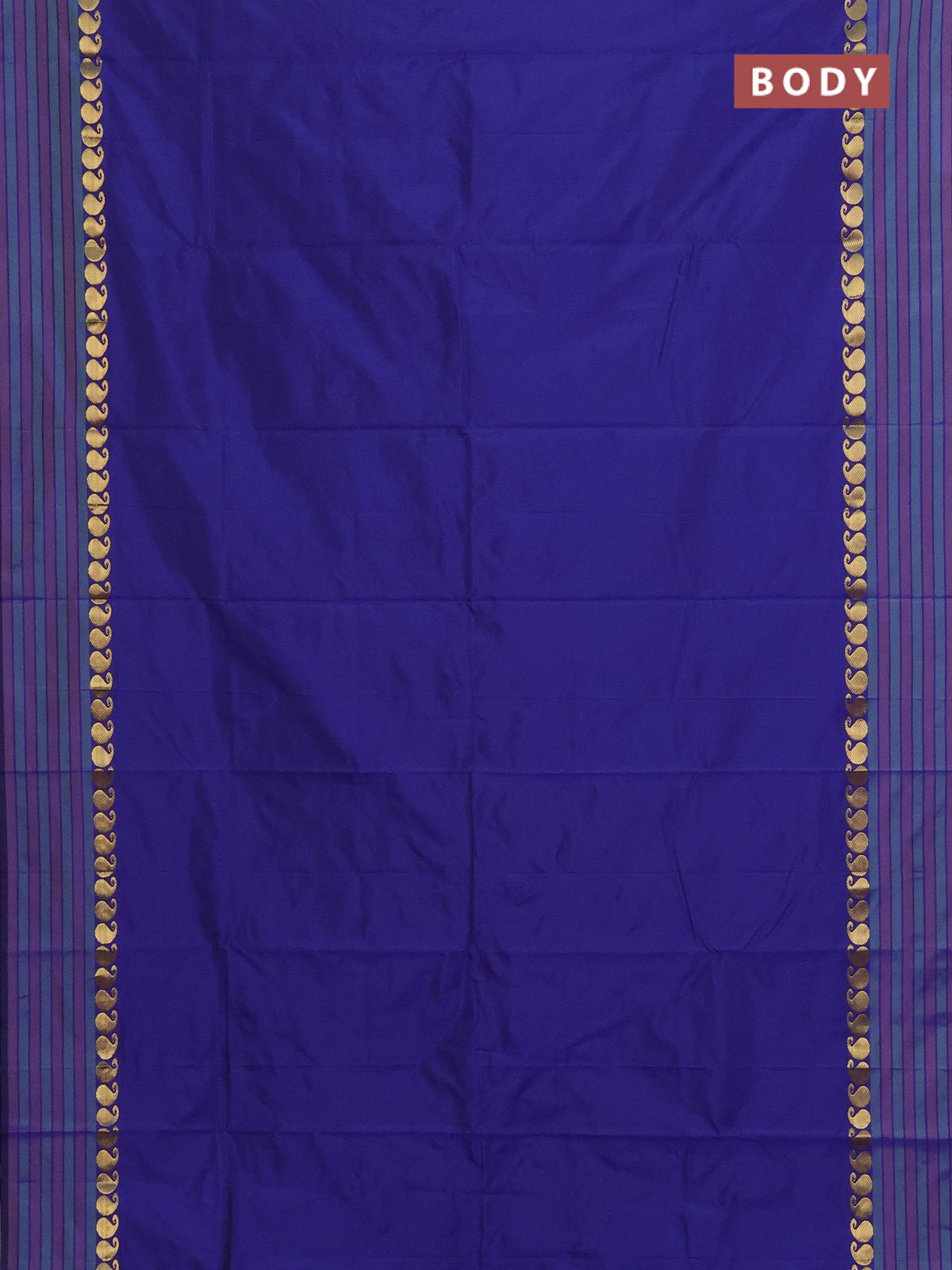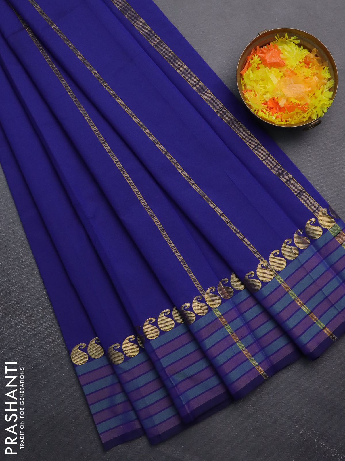 Arani semi silk saree blue and green shade with plain body and paisley zari woven simple border
