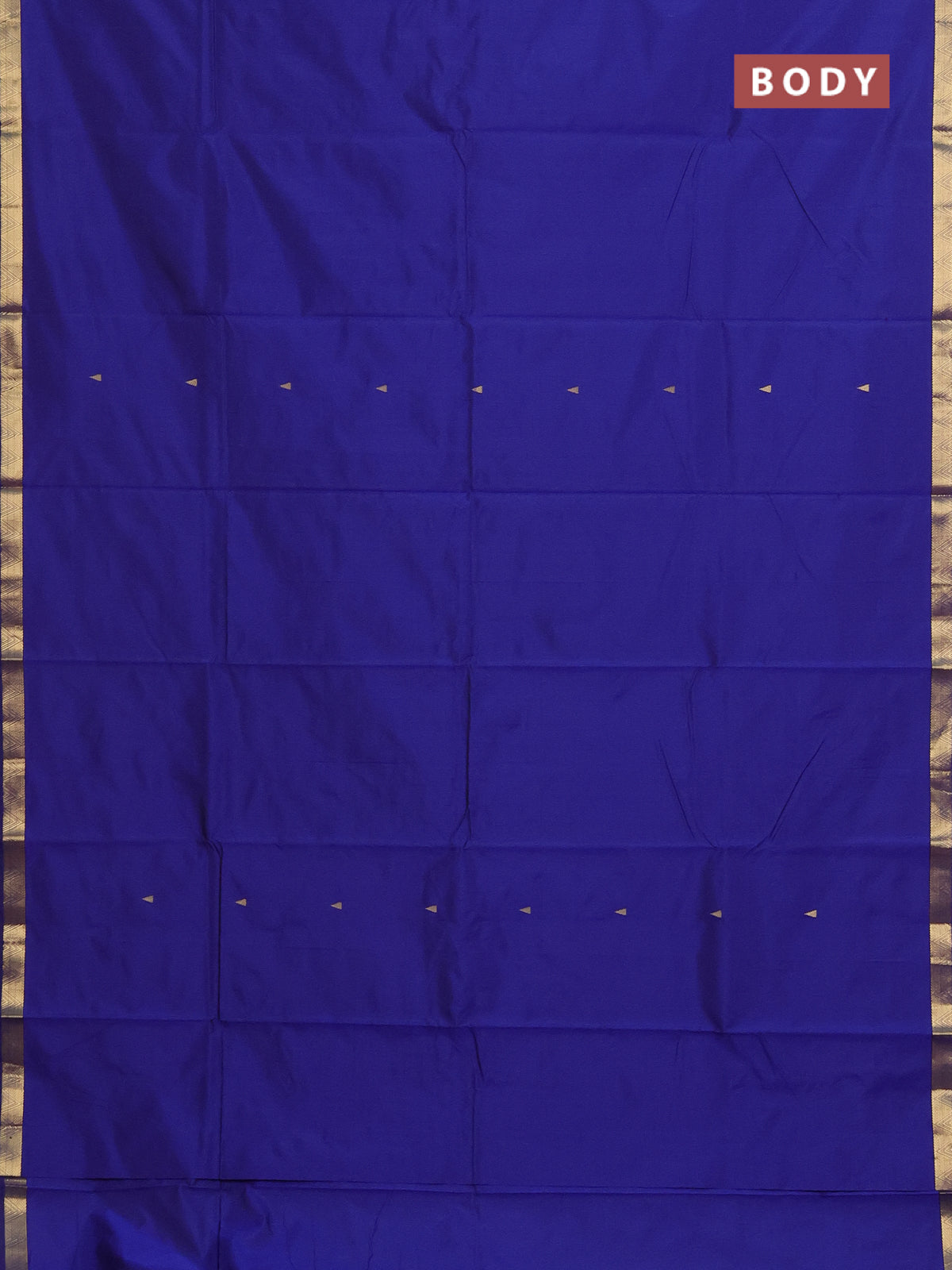 Arani semi silk saree blue with zari woven temple buttas and zari woven border