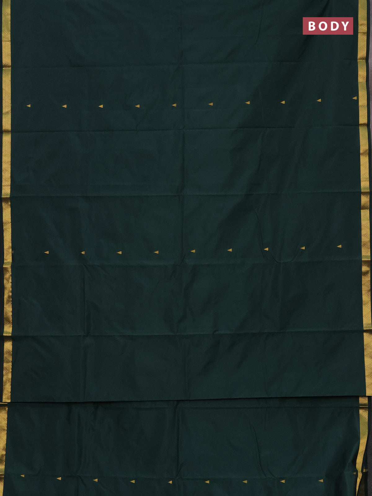 Arani semi silk saree bottle green with zari woven temple buttas and zari woven border