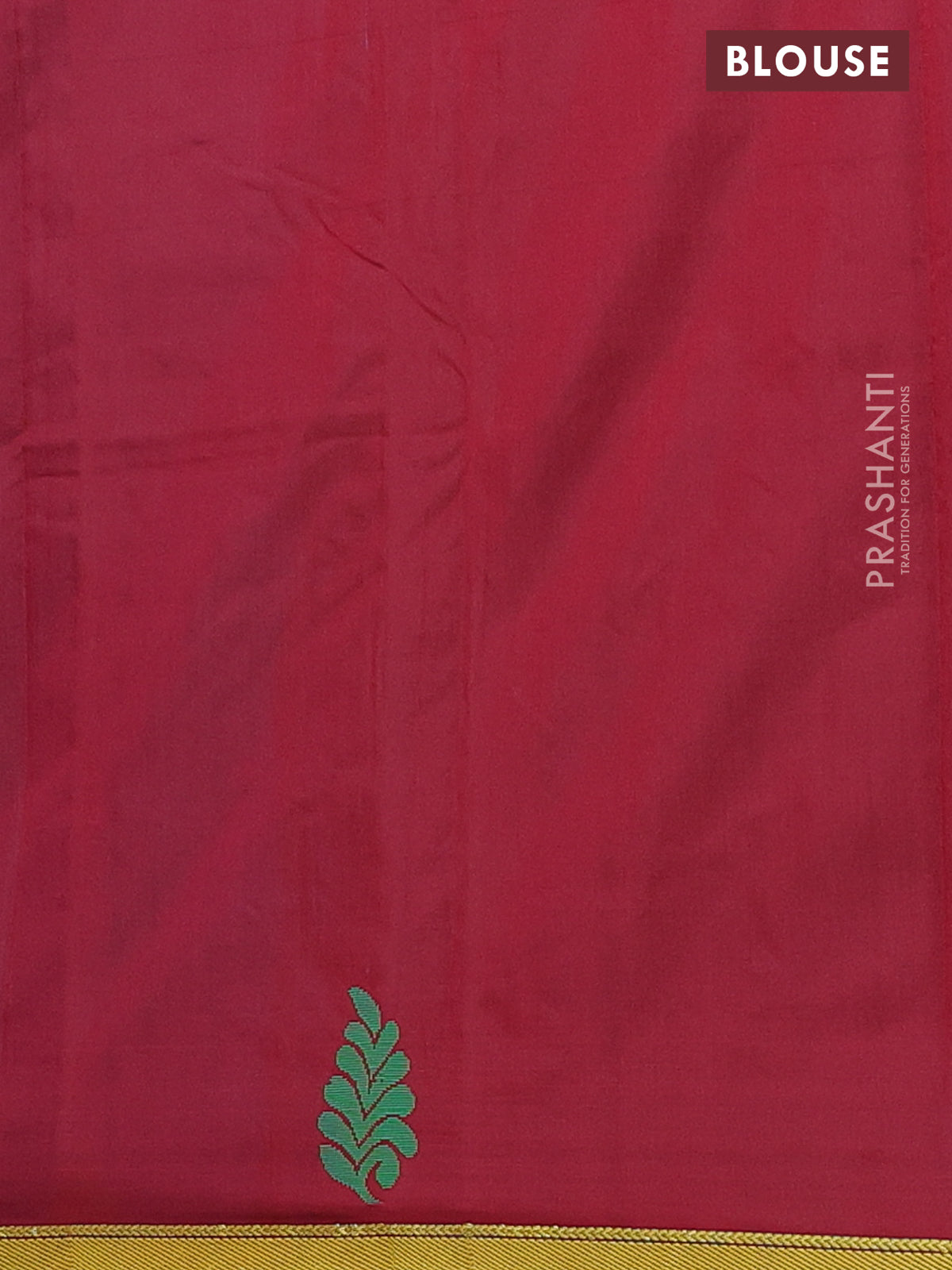 Material : Arani Semi Silk Blouse : Attached Length of saree : 6.2 mts (5.5 mts saree & 70 cms... Read more