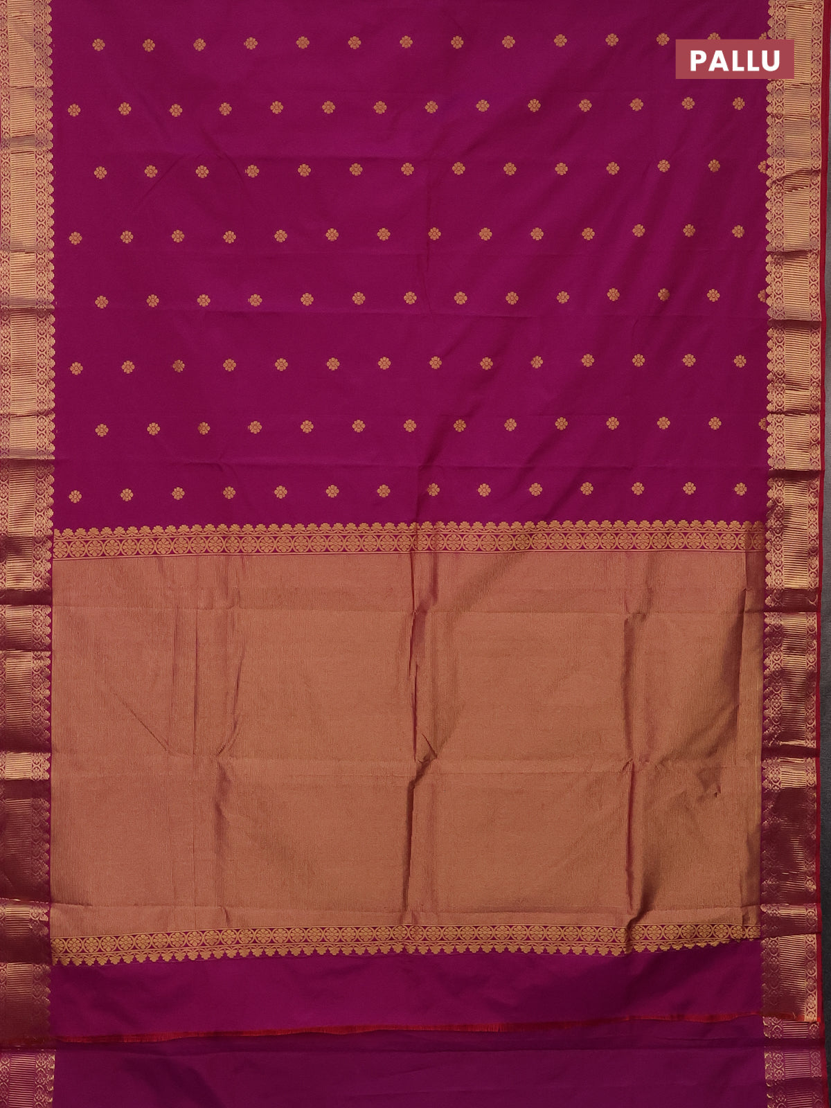 Arani semi silk saree dark magenta pink with zari woven floral buttas and zari woven border