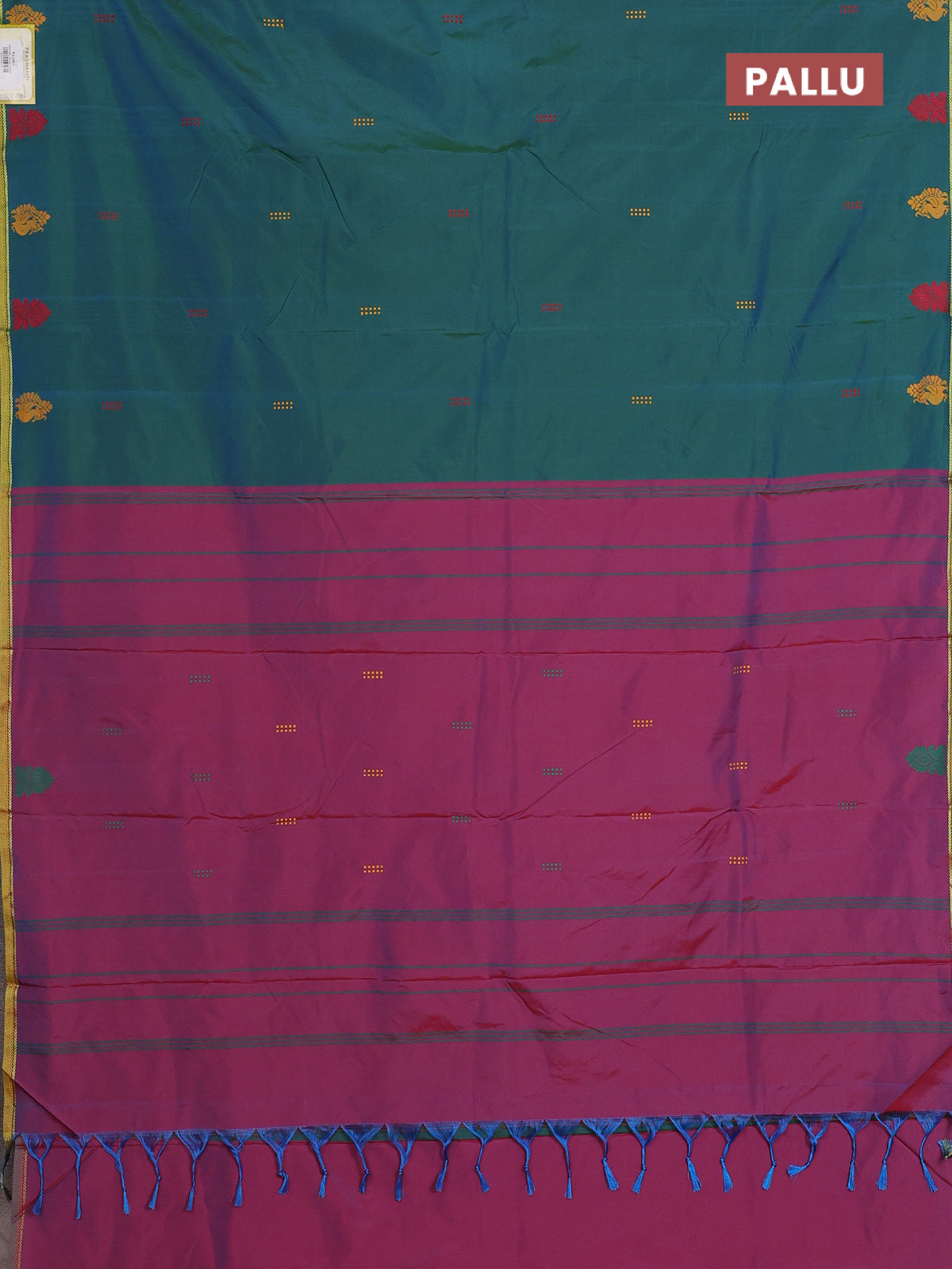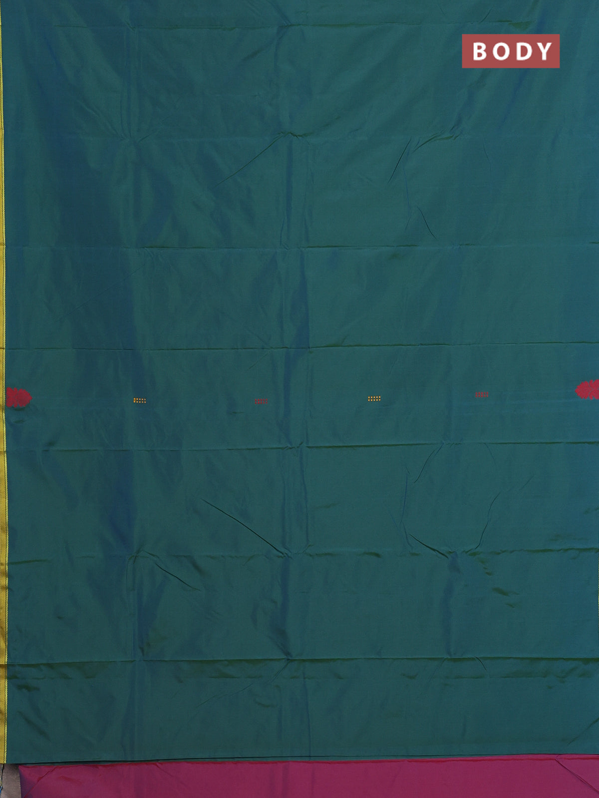 Arani semi silk saree dual shade of bluish green and dual shade of bluish red with thread woven buttas and thread woven border