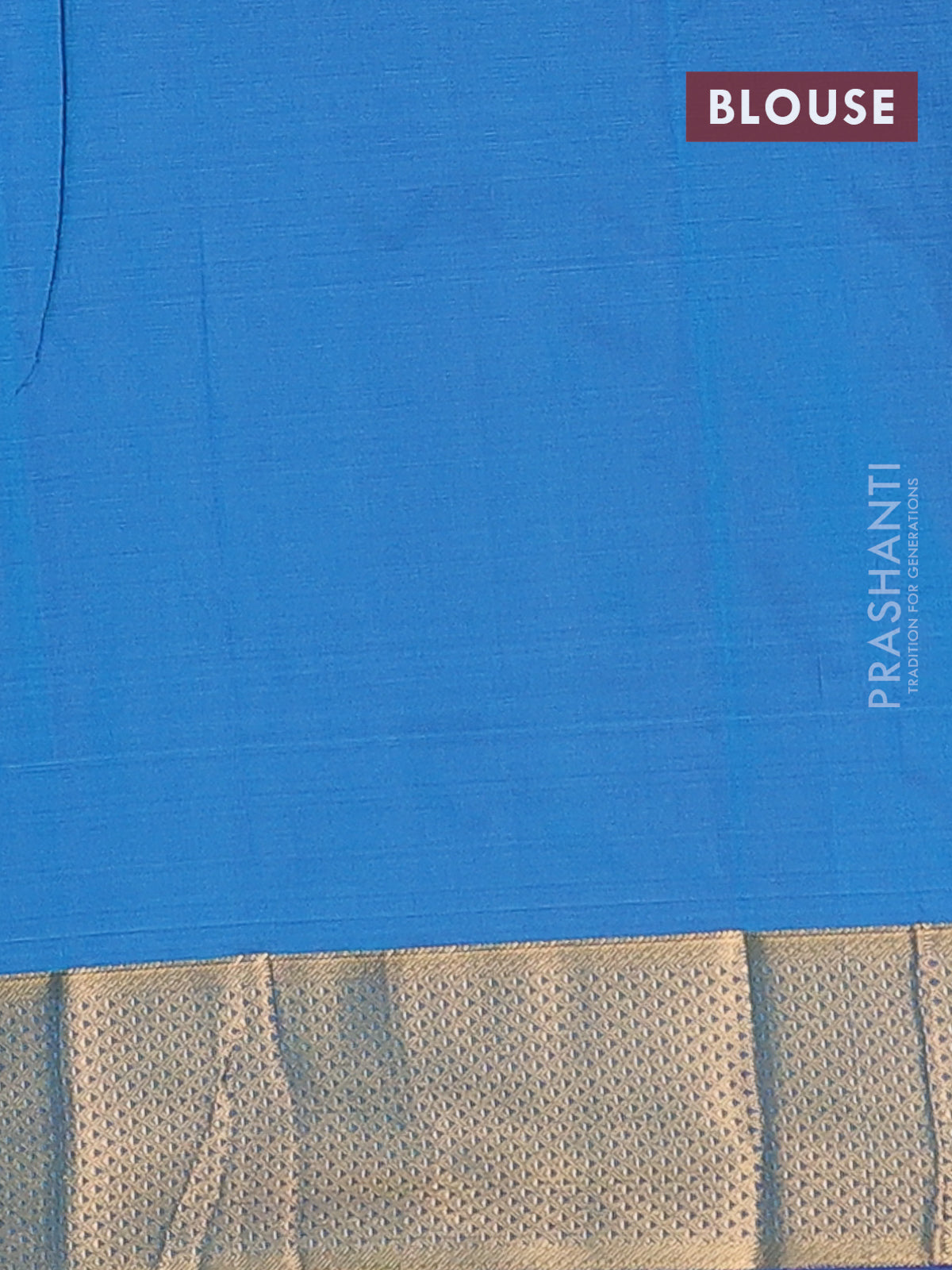 Arani semi silk saree dual shade of cs blue with zari woven buttas and zari woven border