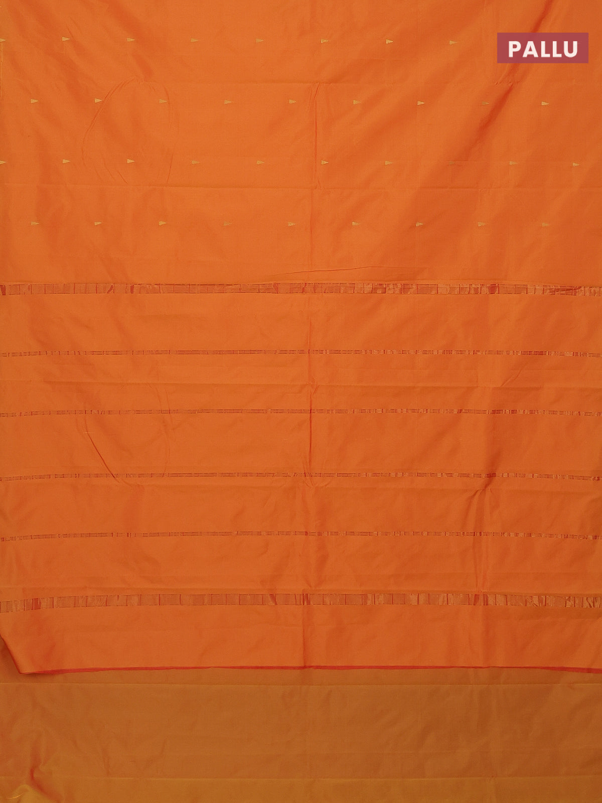 Arani semi silk saree dual shade of mango yellow with zari woven temple buttas and zari woven border