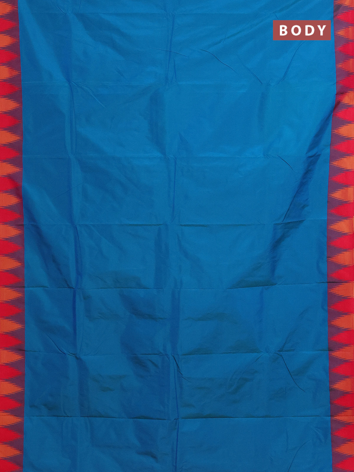 Arani semi silk saree dual shade of teal blue and dual shade of pink with plain body and temple design border