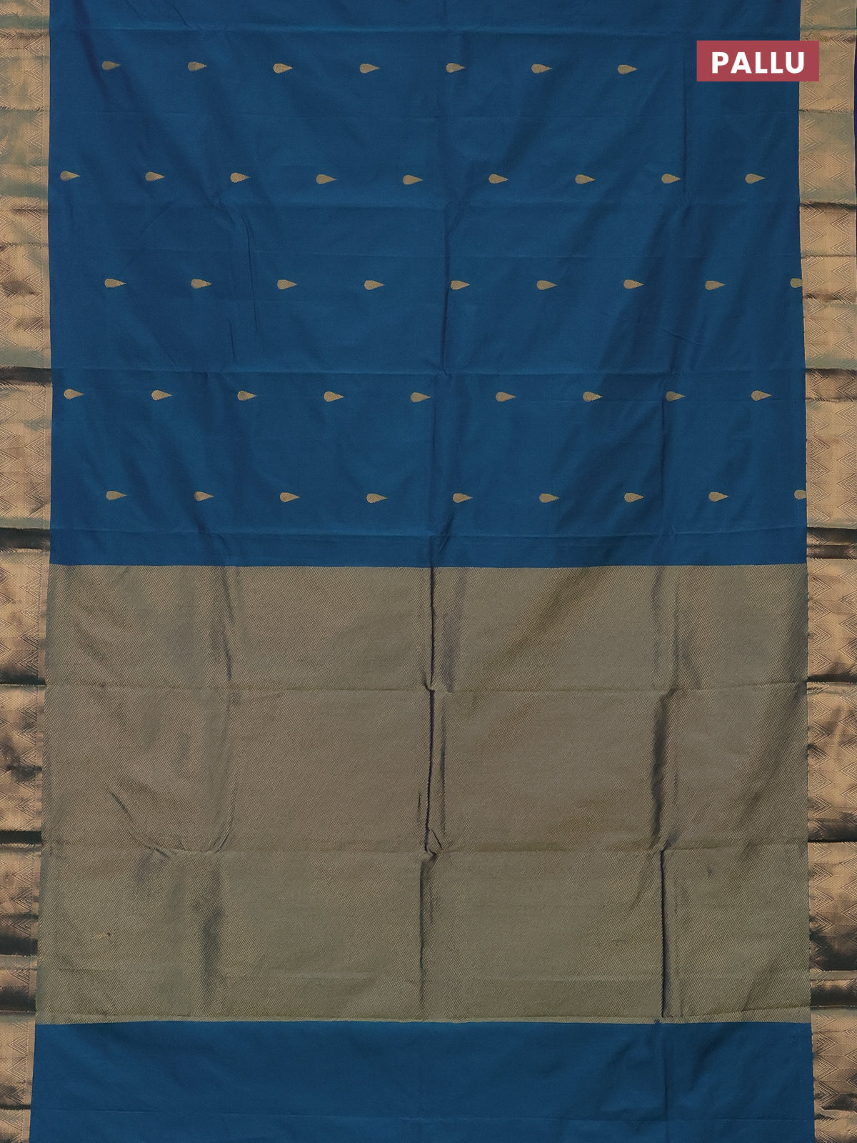Arani semi silk saree dual shade of teal green with zari woven thilak buttas and zari woven border