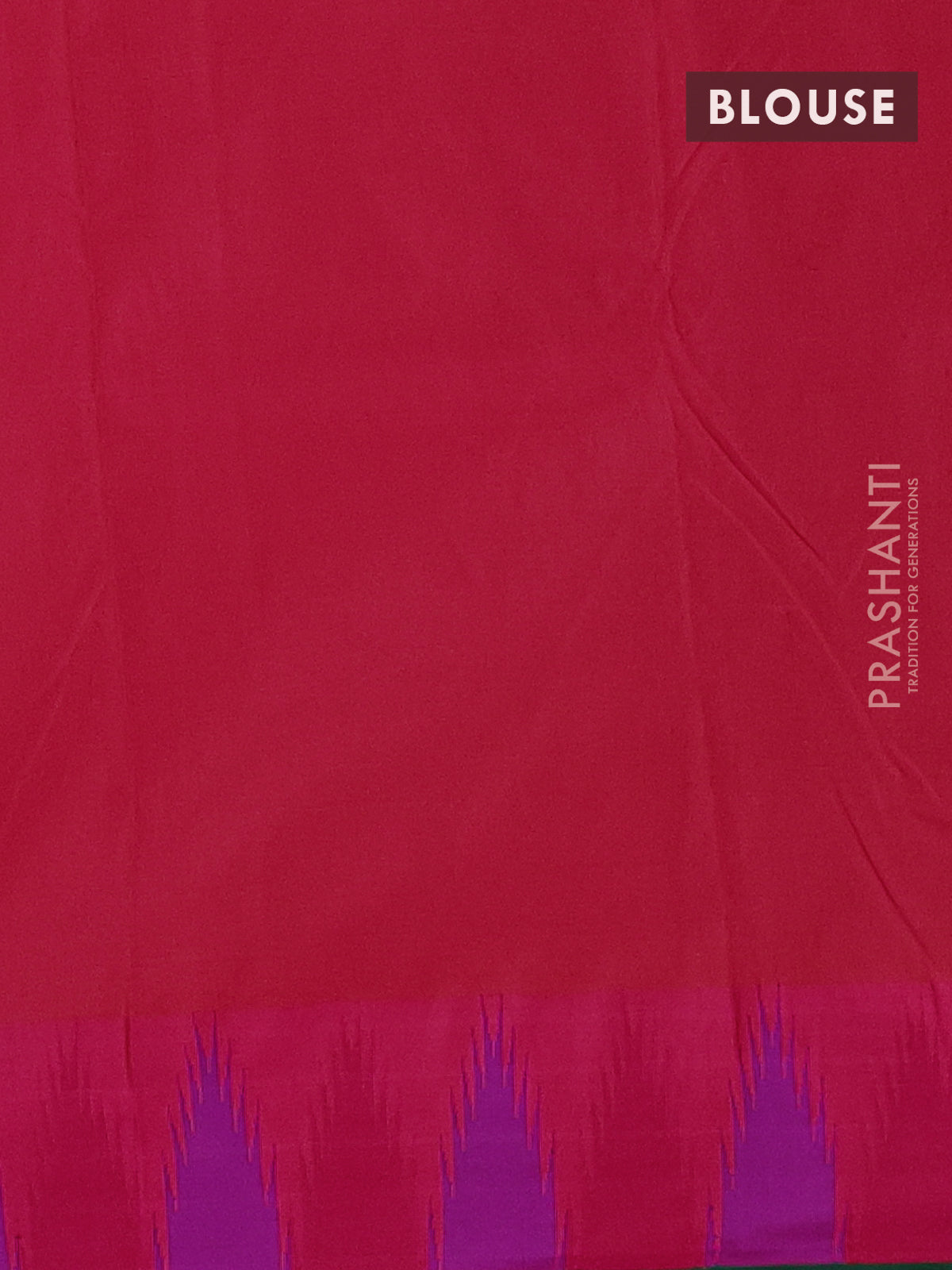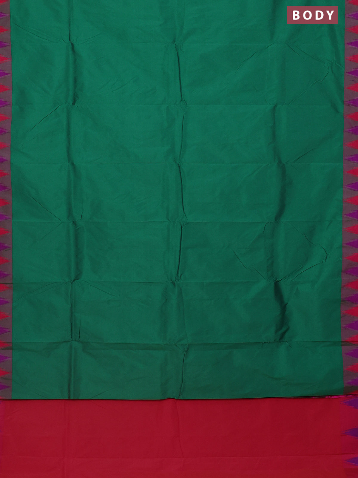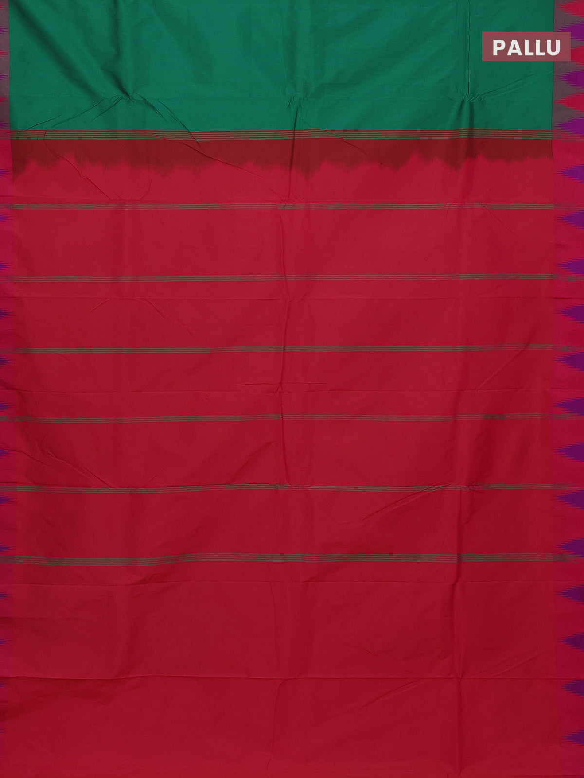 Arani semi silk saree green and dual shade of magenta pink with plain body and temple design border