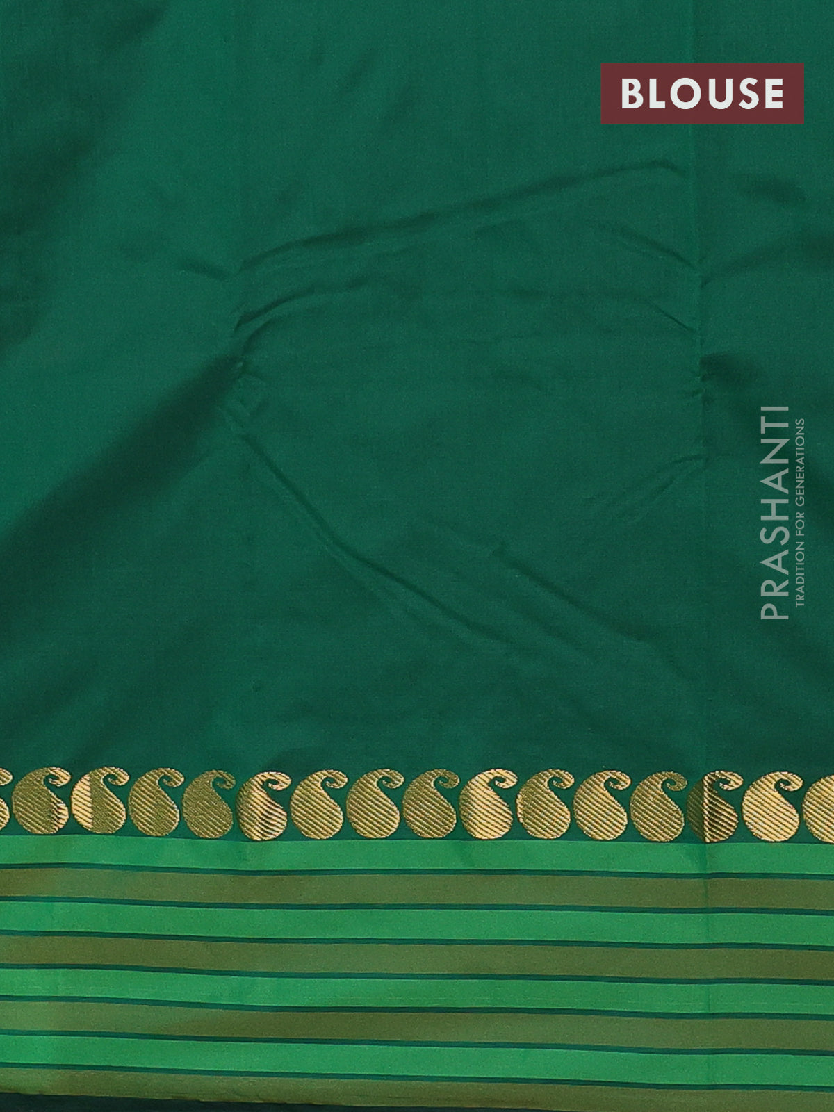 Arani semi silk saree green and light green with plain body and paisley zari woven simple border