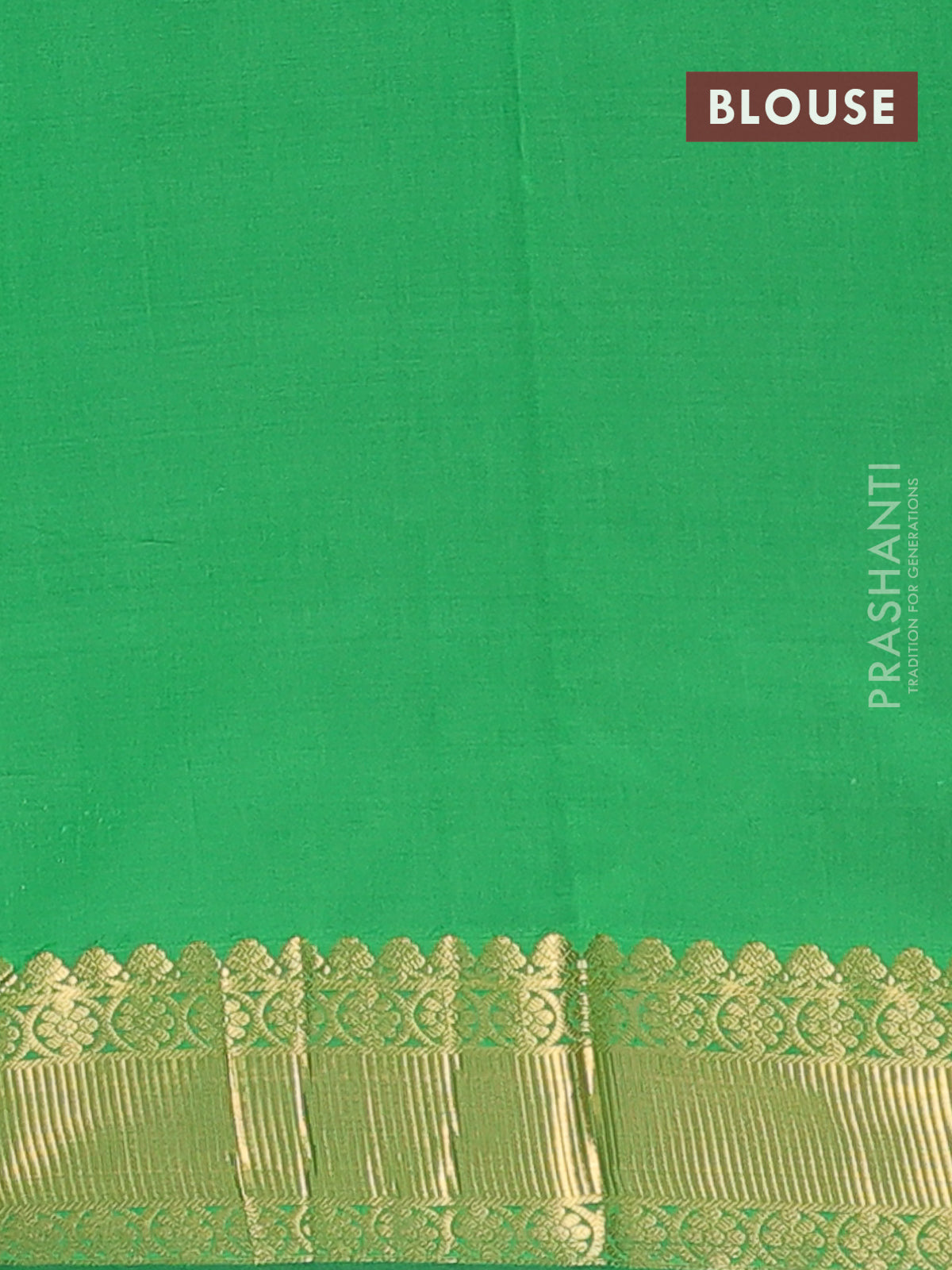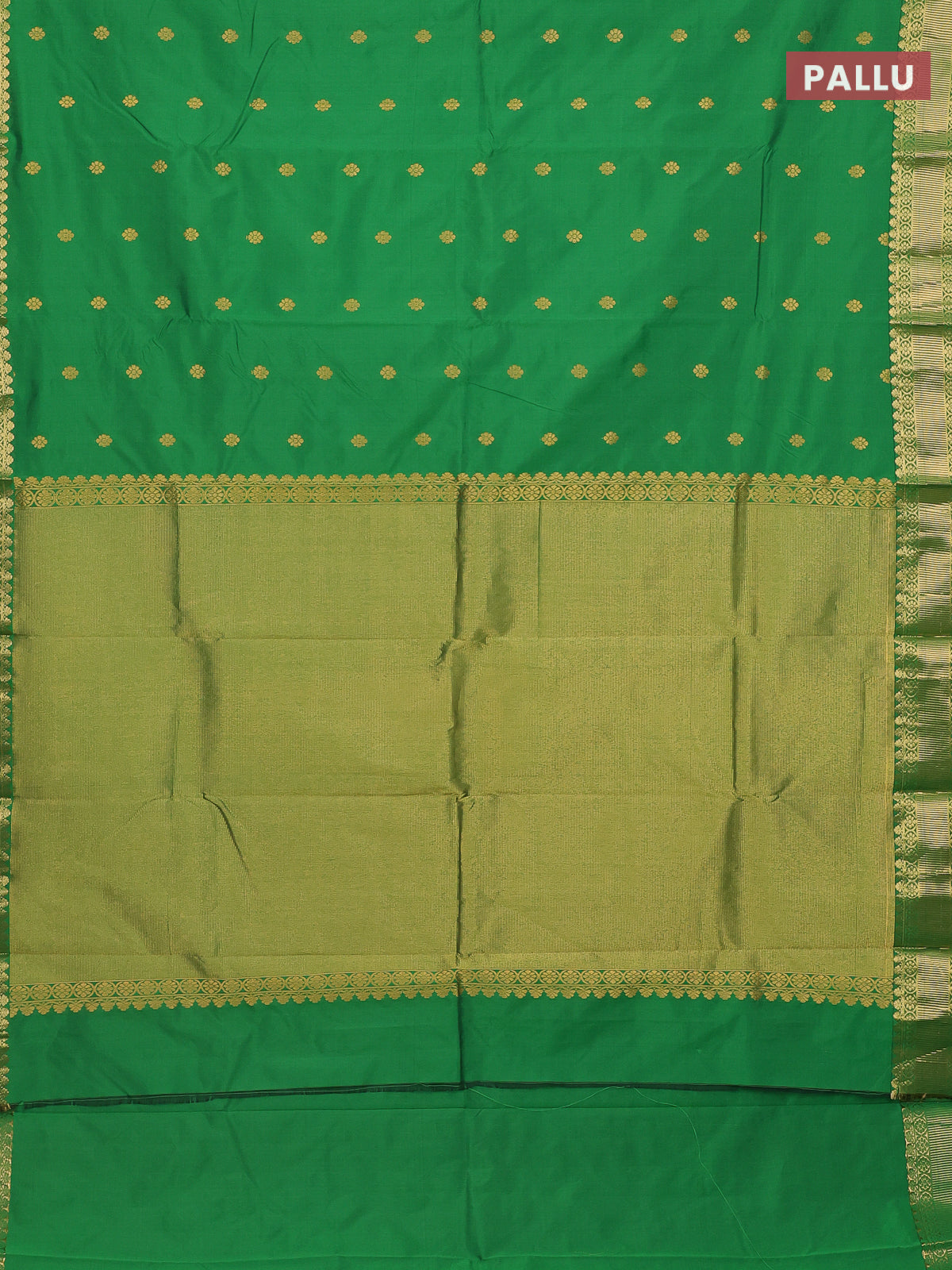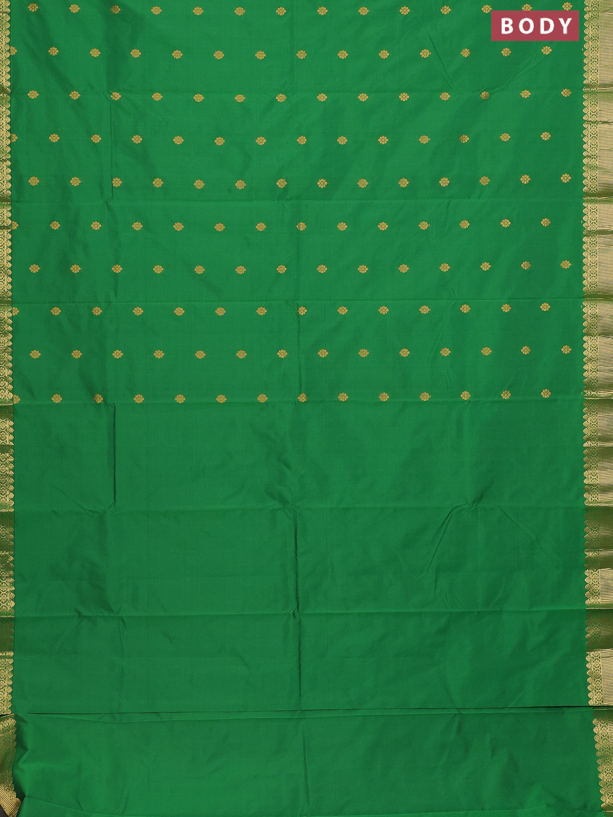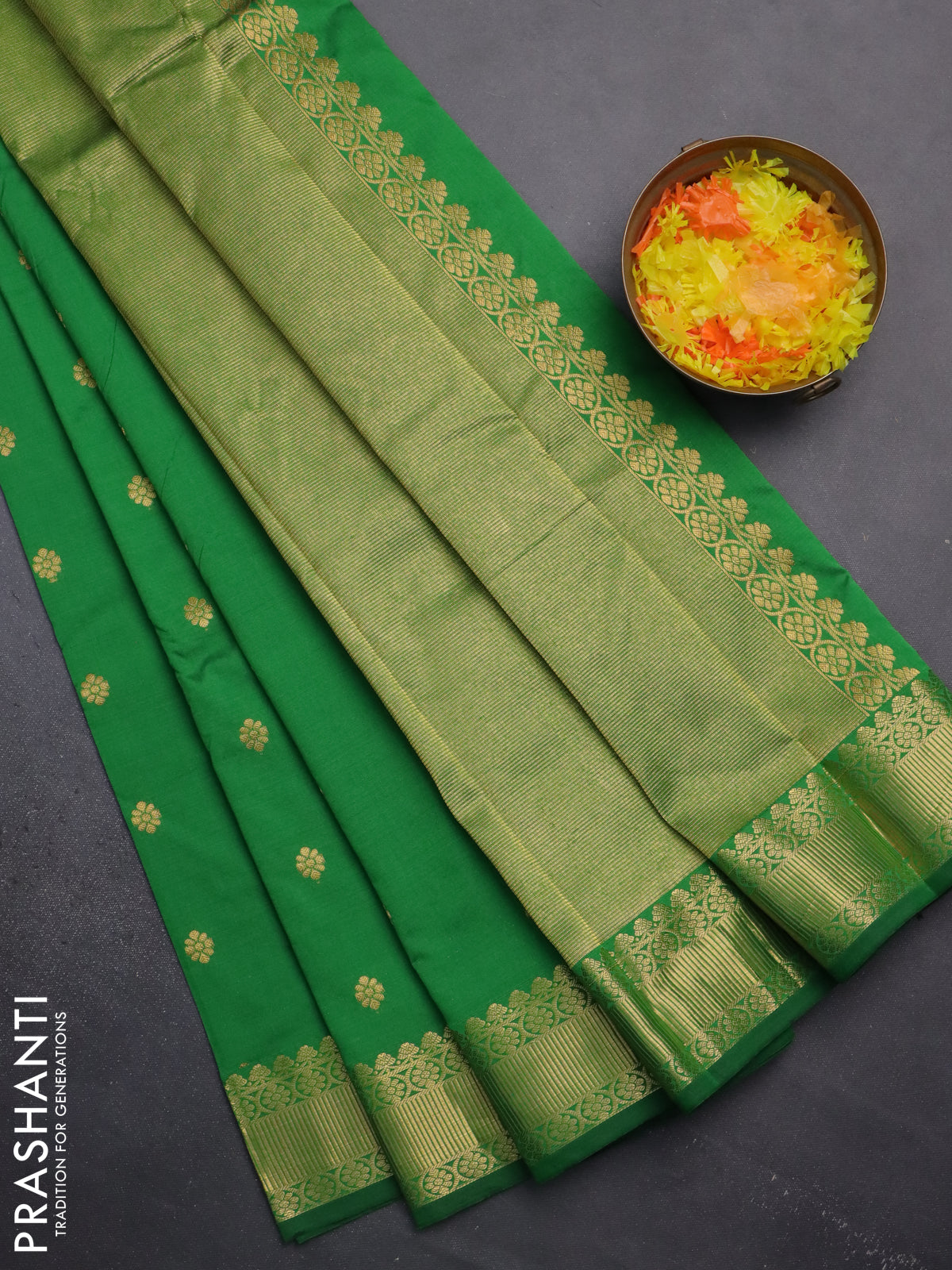 Arani semi silk saree green with zari woven floral buttas and zari woven border