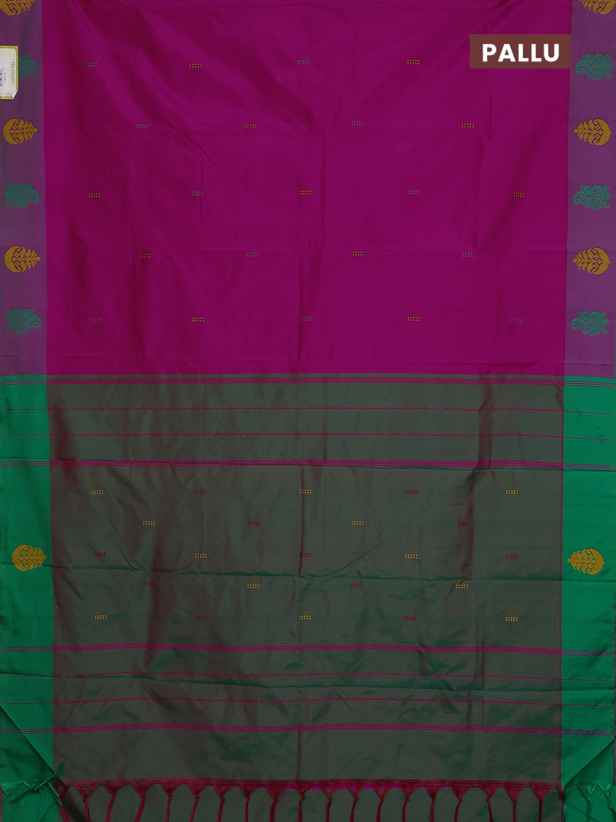 Arani semi silk saree magenta pink and green with thread woven buttas and thread woven butta border