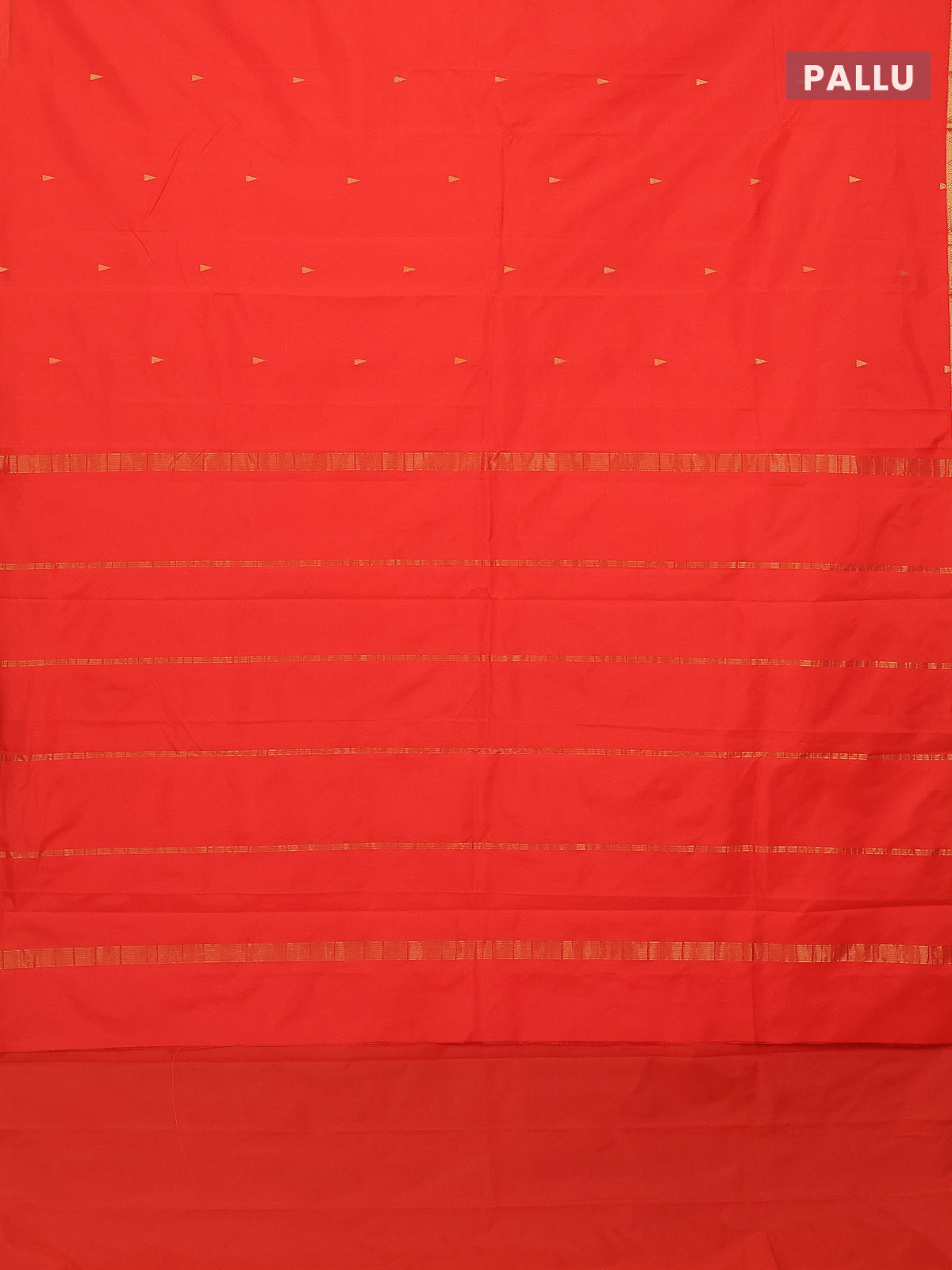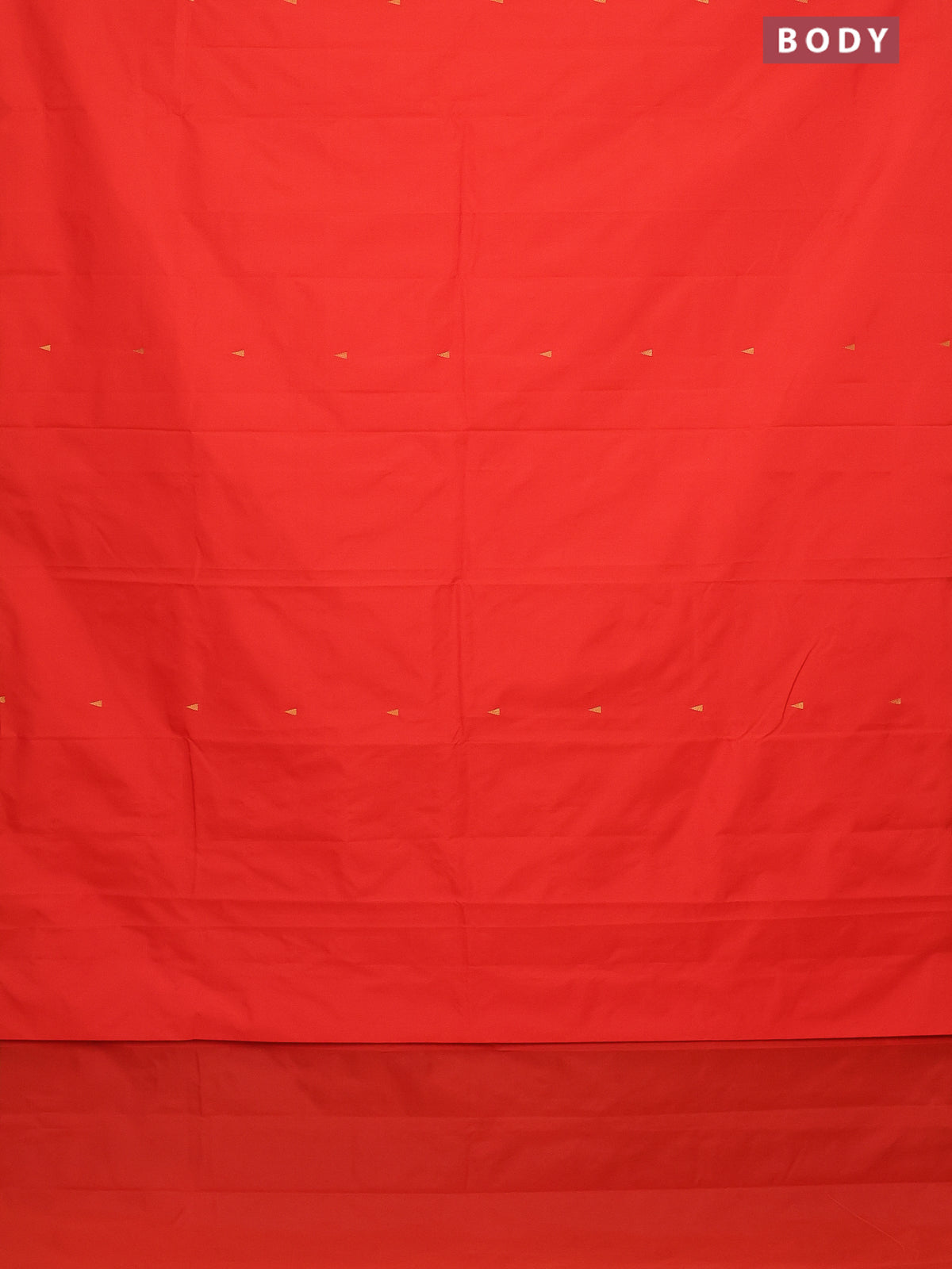 Arani semi silk saree orange with zari woven temple buttas and zari woven border