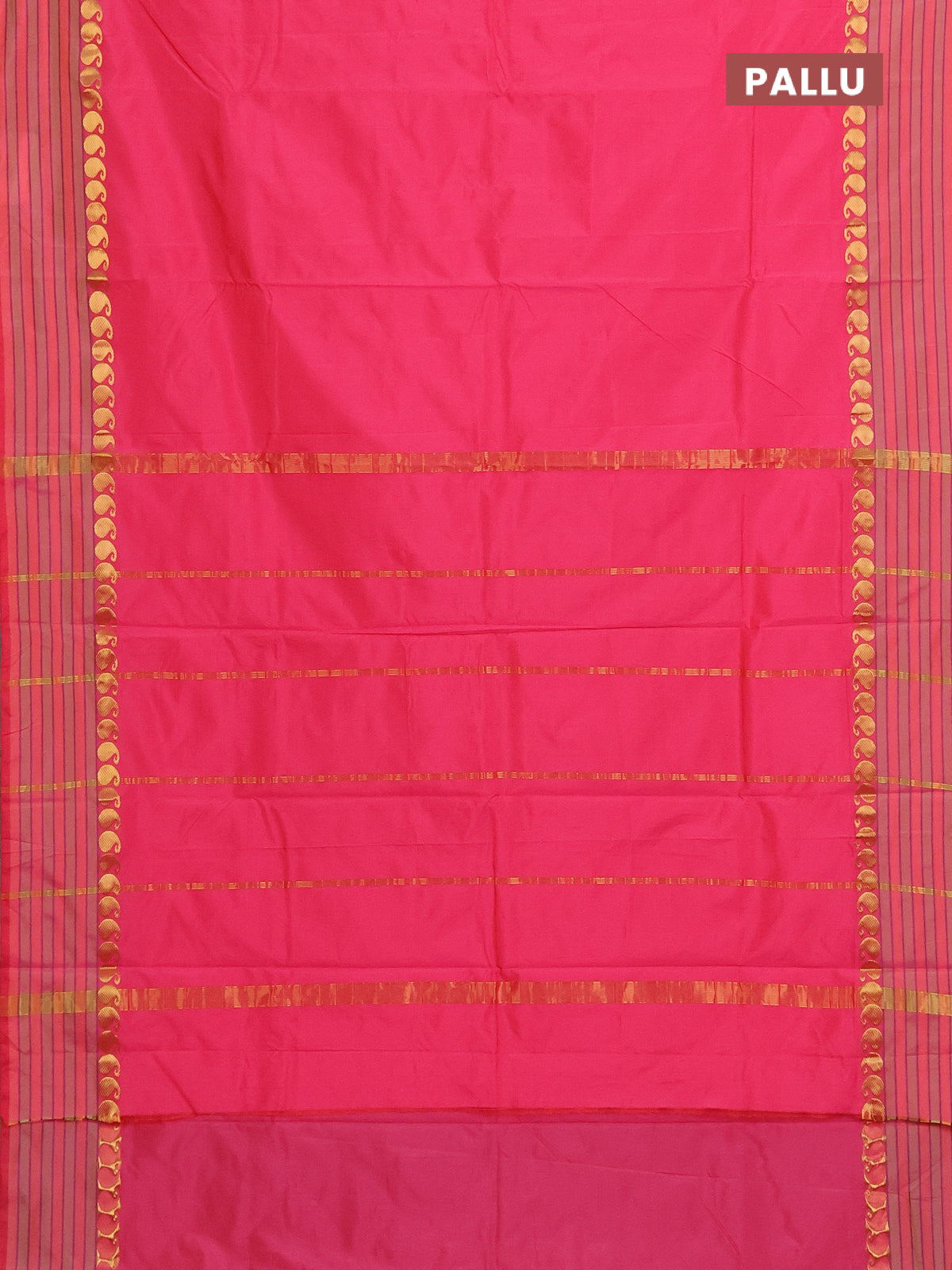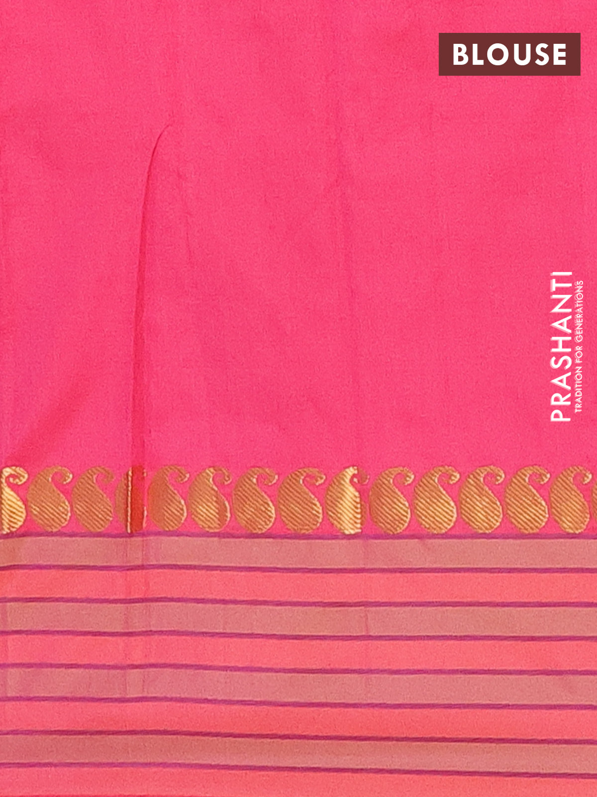Arani semi silk saree peach pink with plain body and paisley zari woven simple border