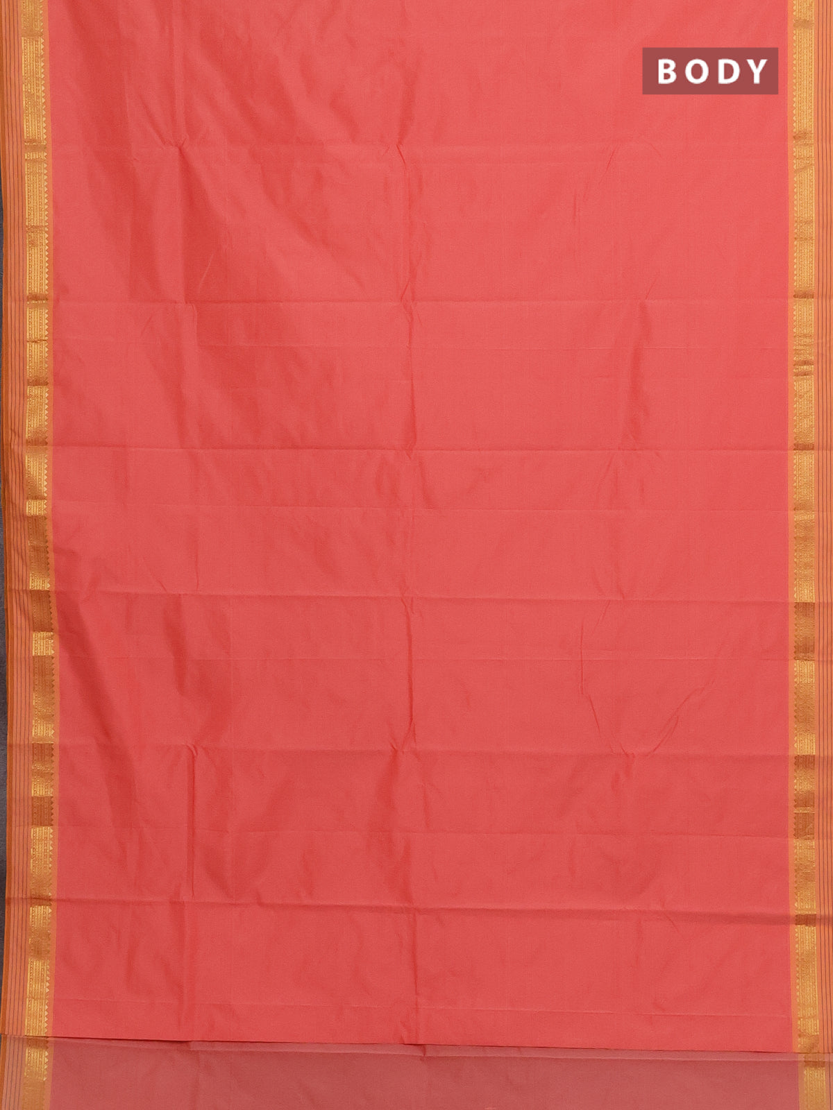 Arani semi silk saree peach shade and mustard yellow with plain body and zari woven simple border