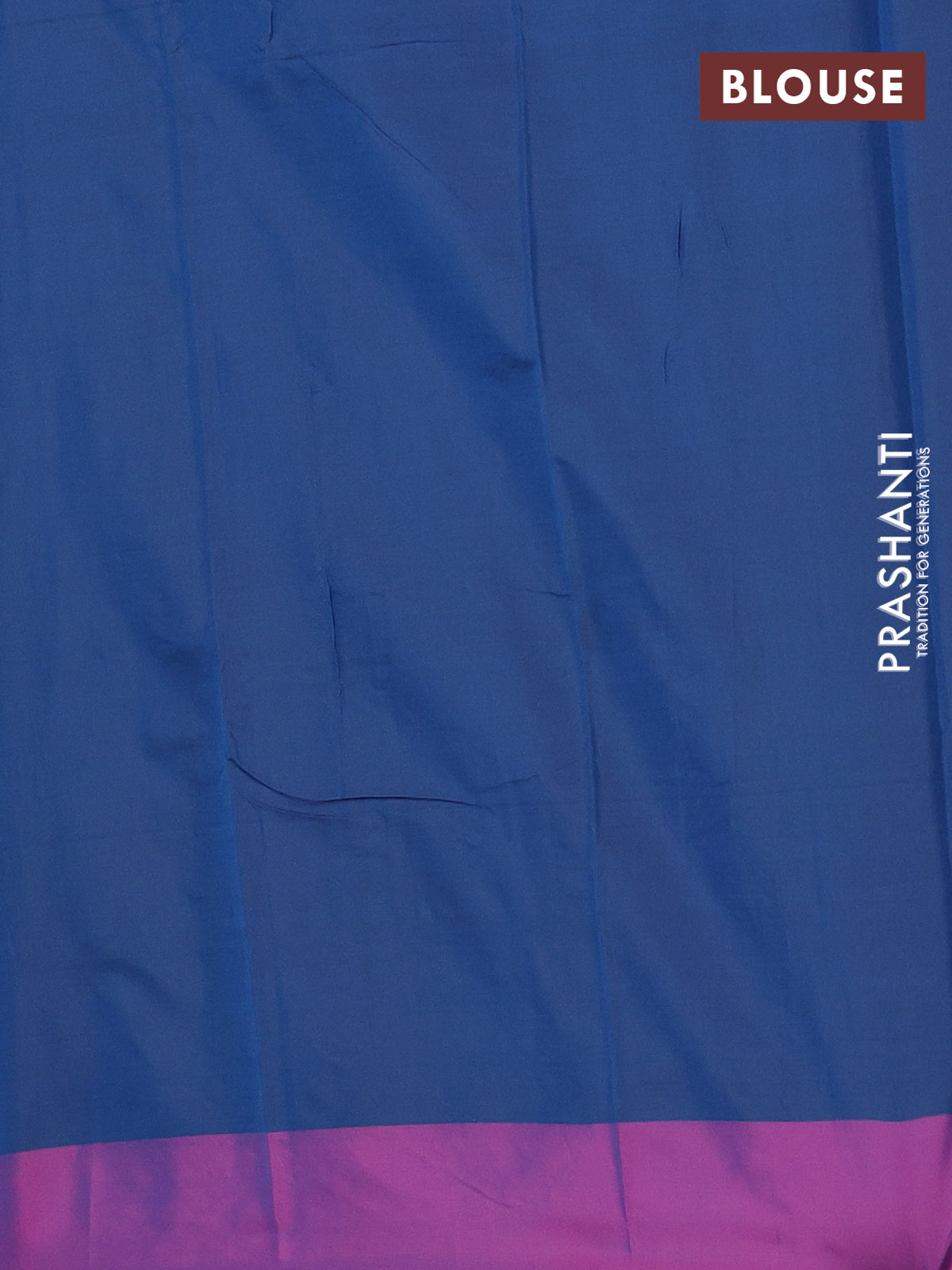 Arani semi silk saree peacock blue and magenta pink with allover copper zari checked pattern and copper zari woven simple border