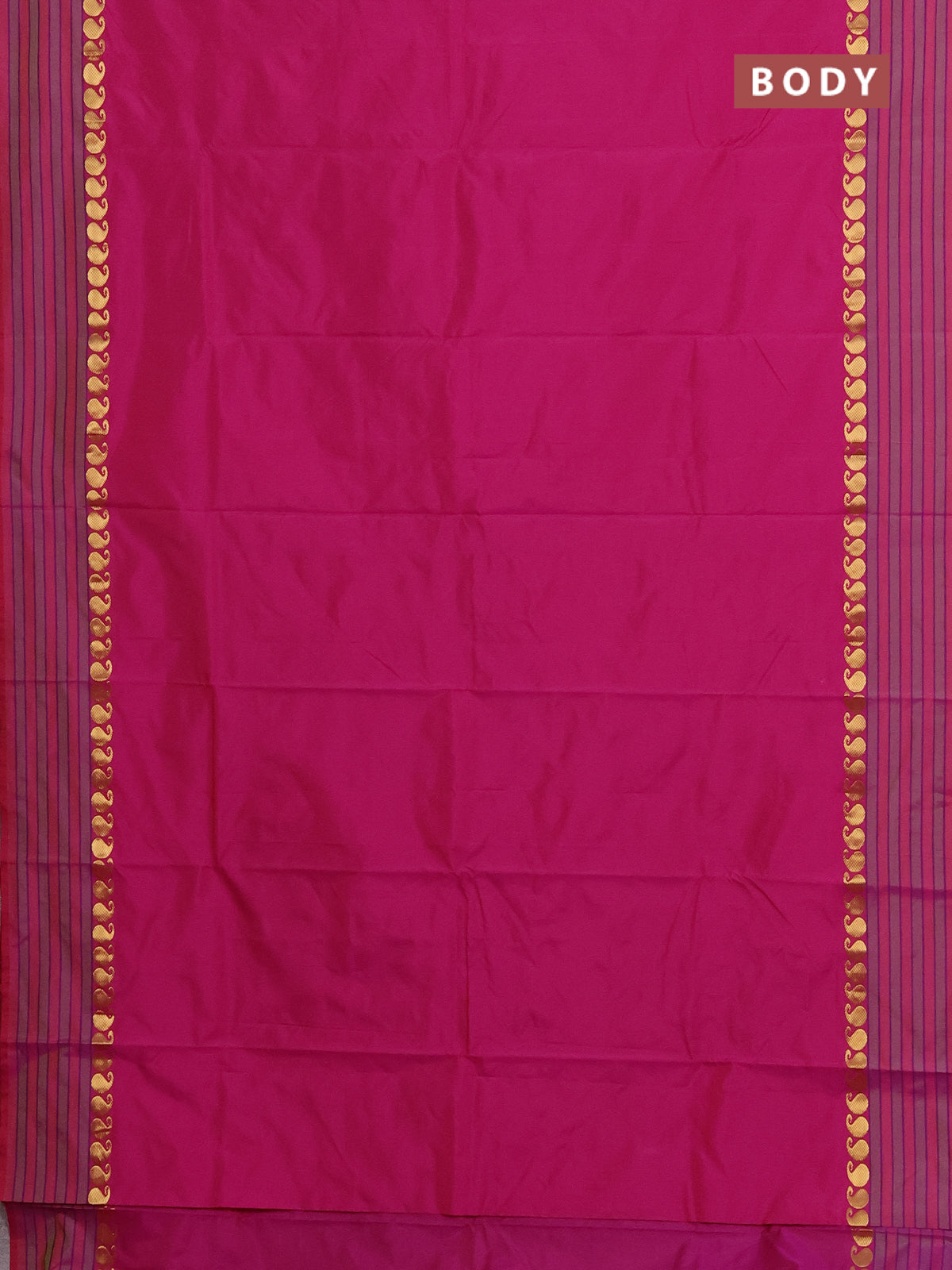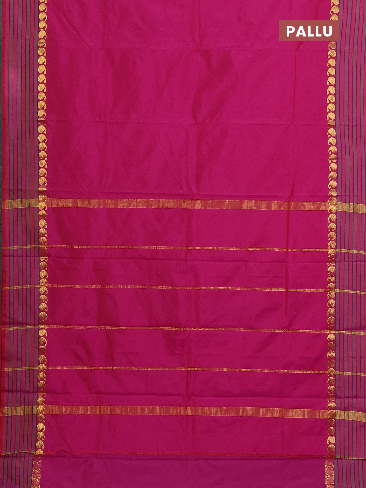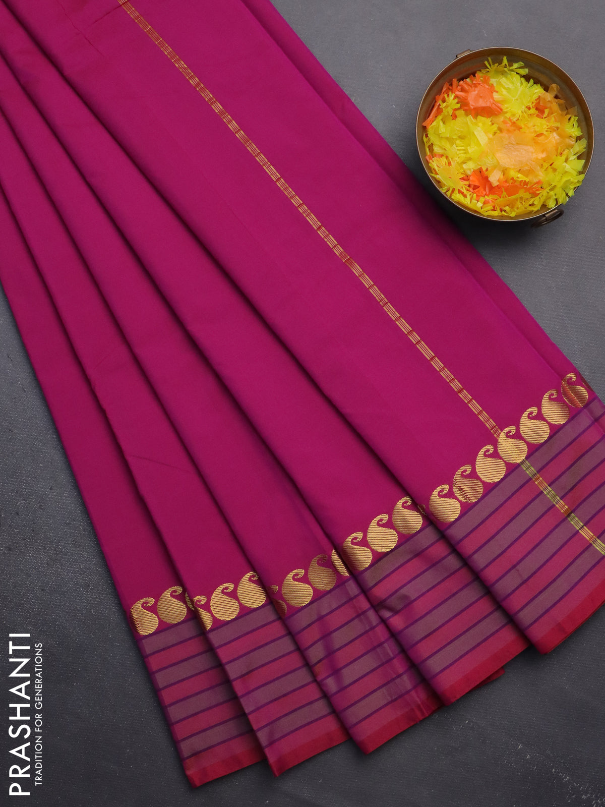 Arani semi silk saree purple and light green with plain body and paisley zari woven simple border