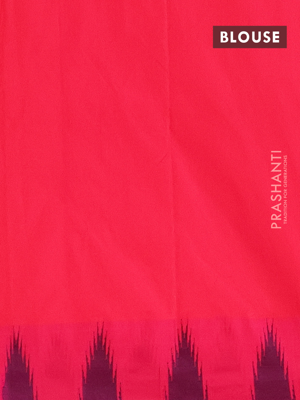 Arani semi silk saree sap green and dual shade of pink with plain body and temple design border