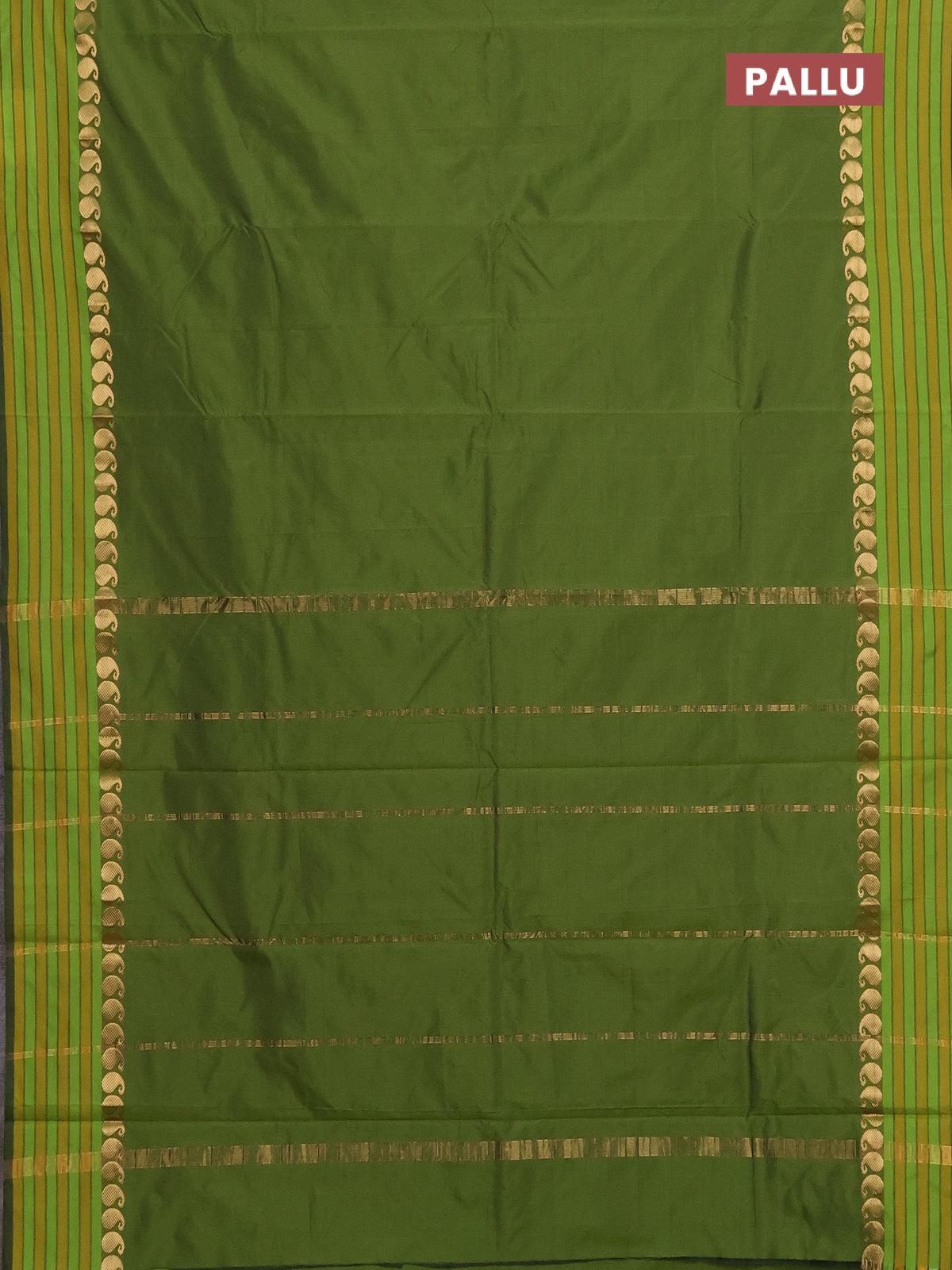 Arani semi silk saree sap green and mustard yellow with plain body and paisley zari woven simple border