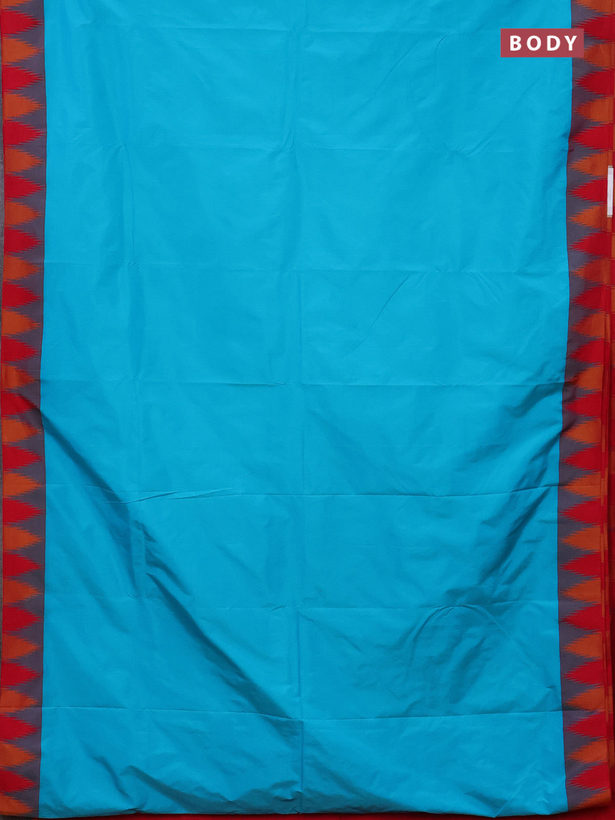Arani semi silk saree teal blue and dual shade of bluish pink with plain body and temple design border